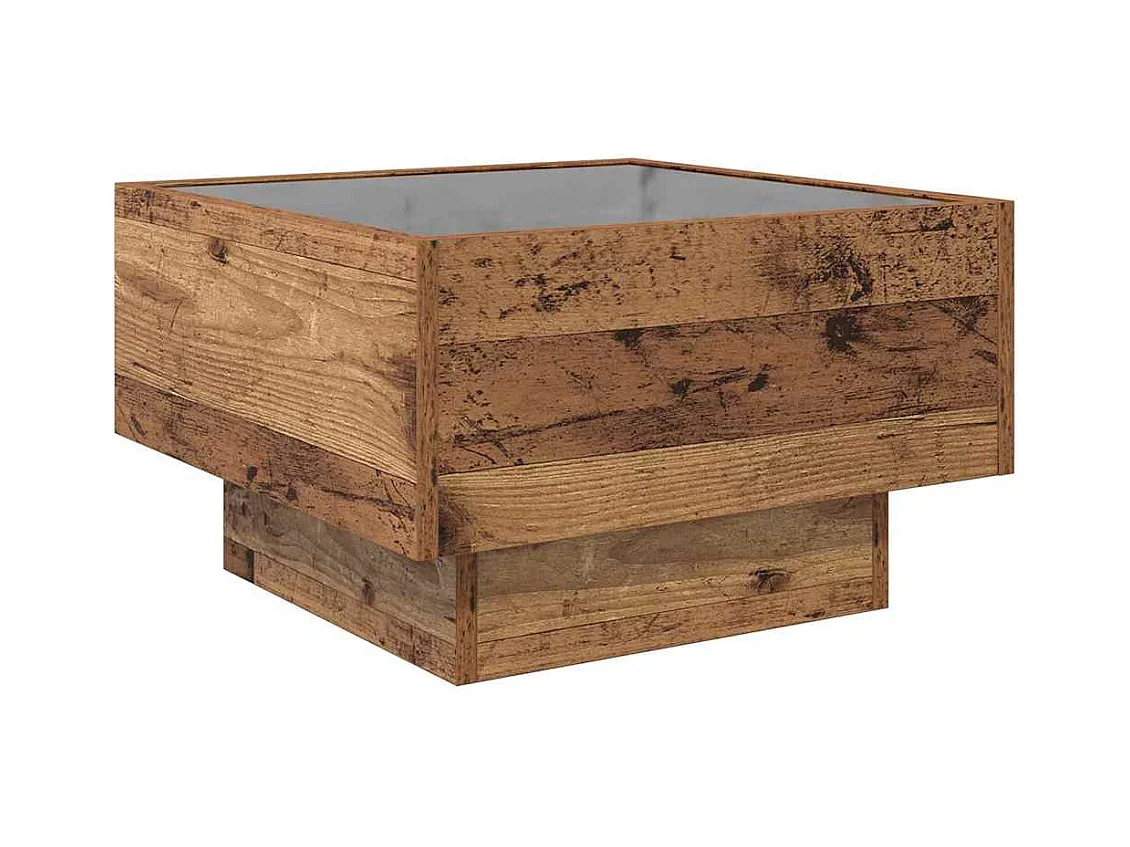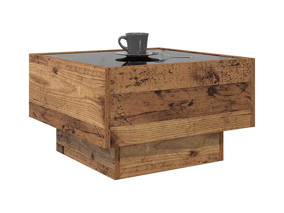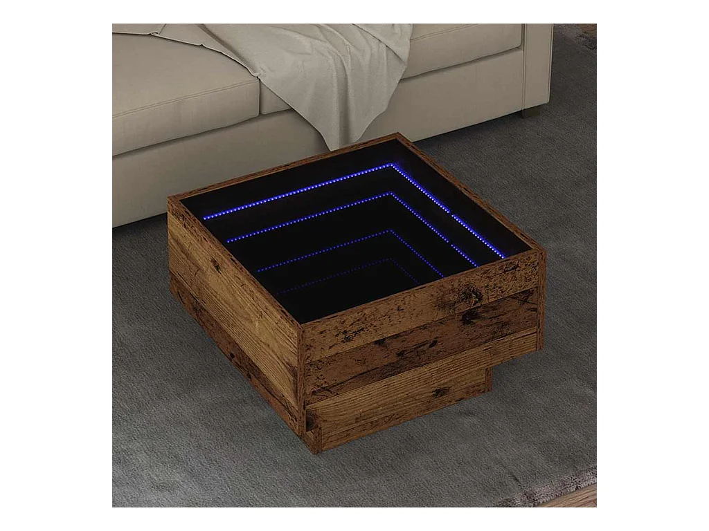 Table basse avec lumières LED vieux bois 50x50x40 cm