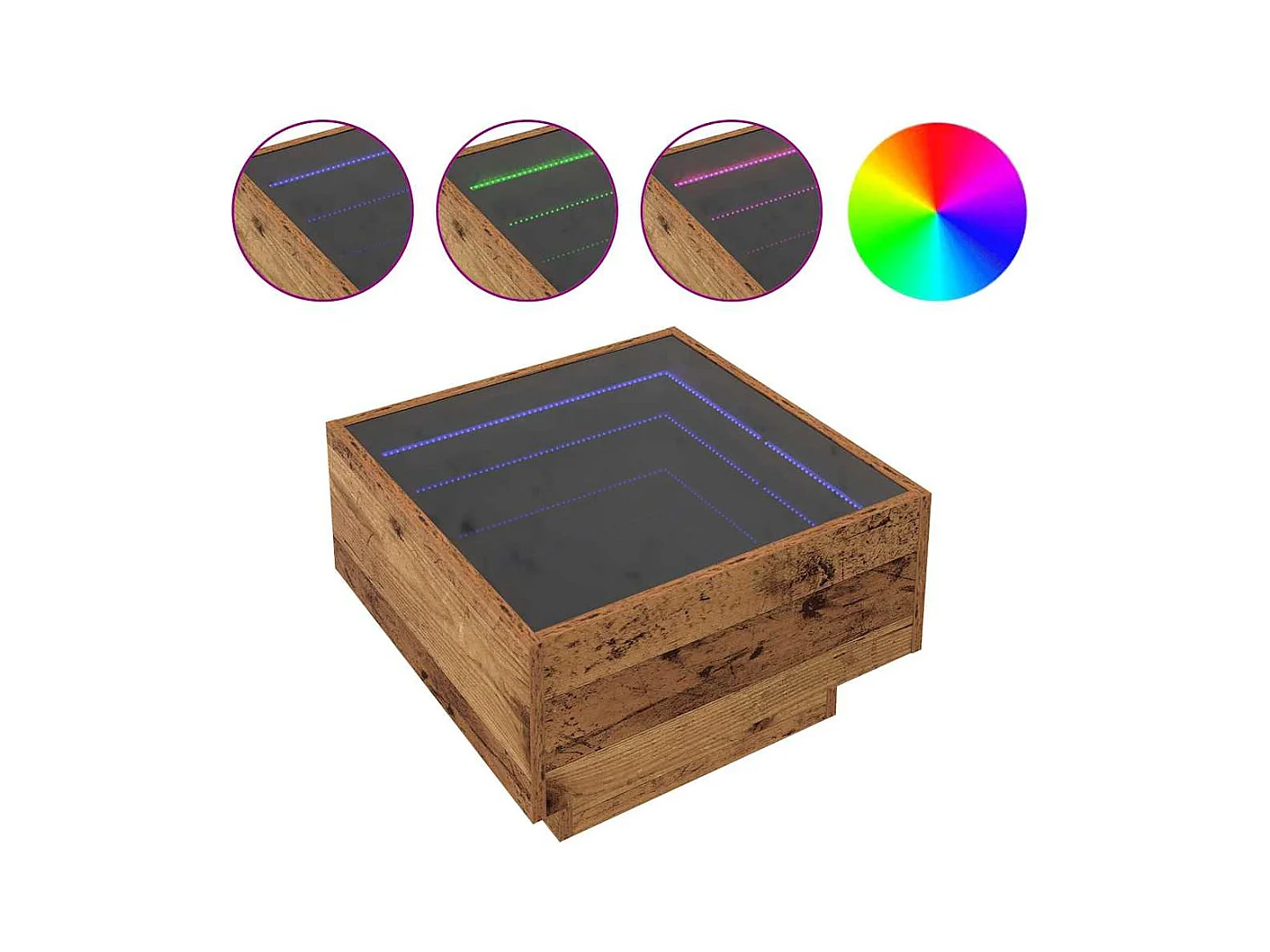 Table basse avec LED infini chêne marron 50x50x30 cm
