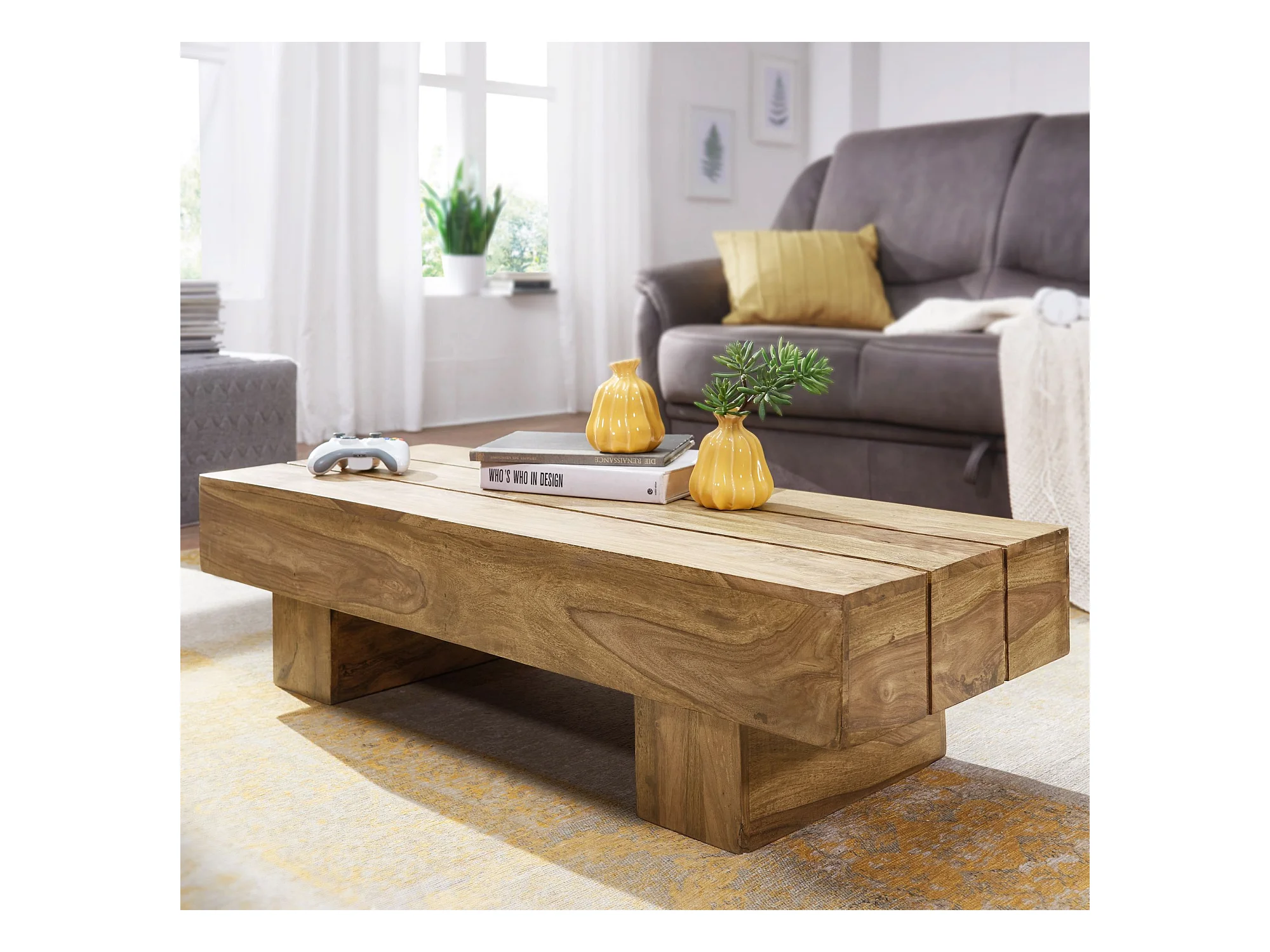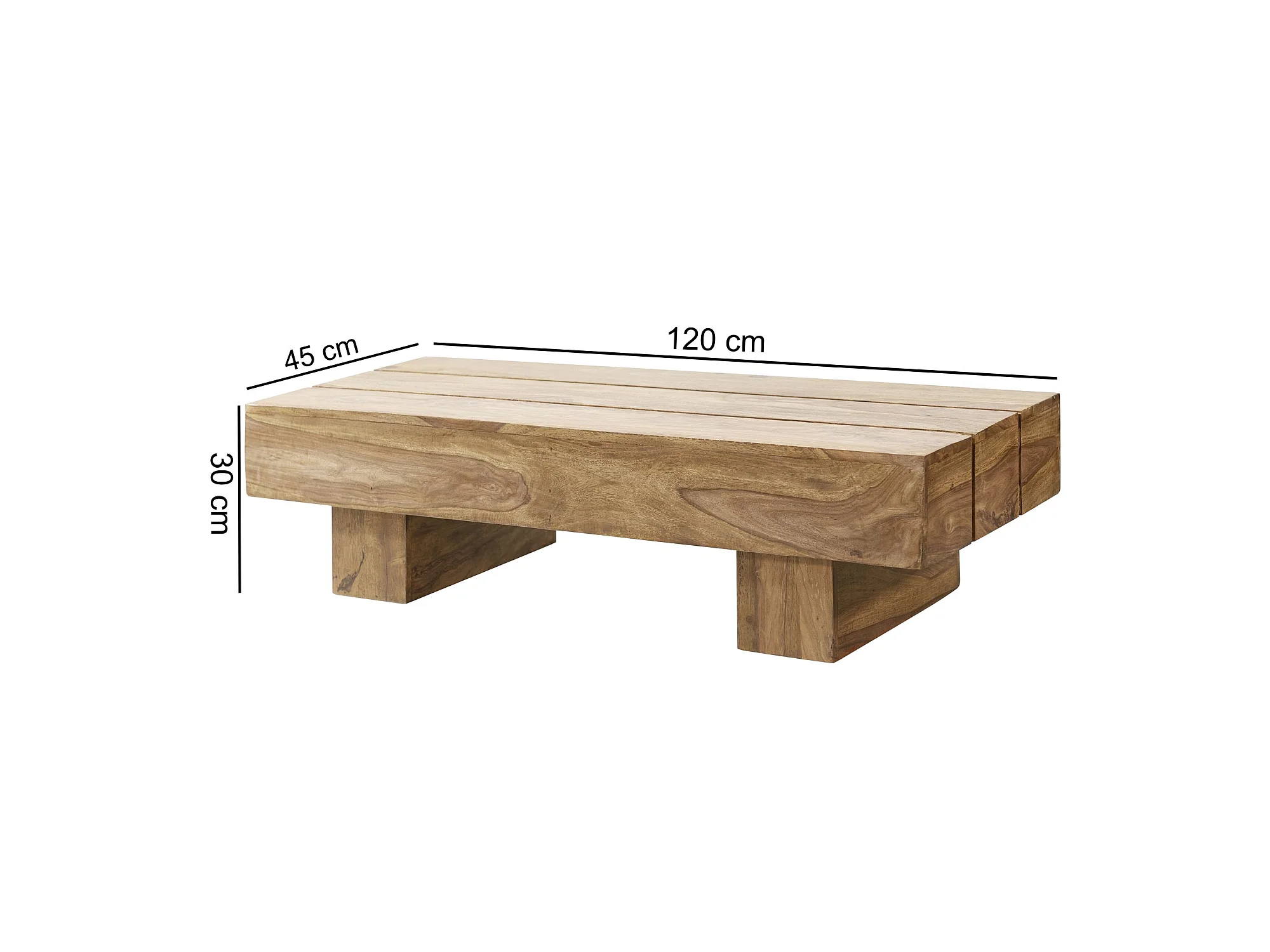 Table Basse Bois Massif 120x30x45cm Table d'appoint Table de salon