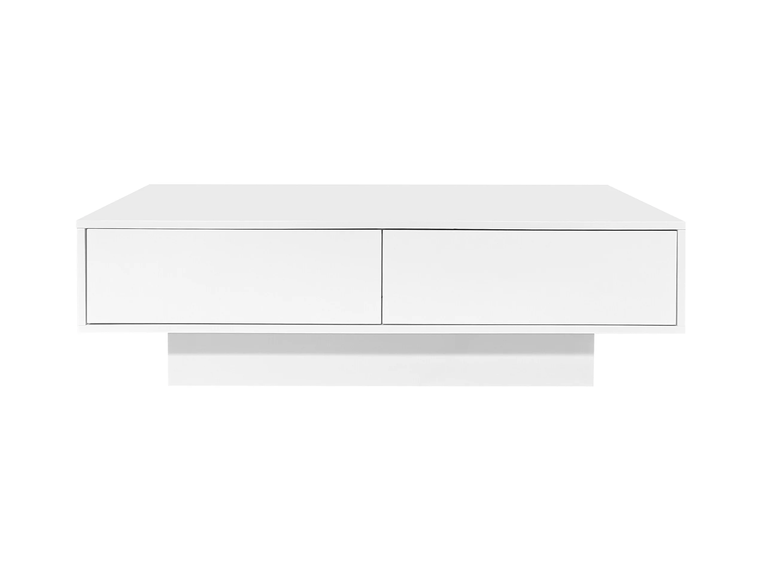 Table basse brillante blanche avec 2 tiroirs de rangement et éclairage LED – pour salon