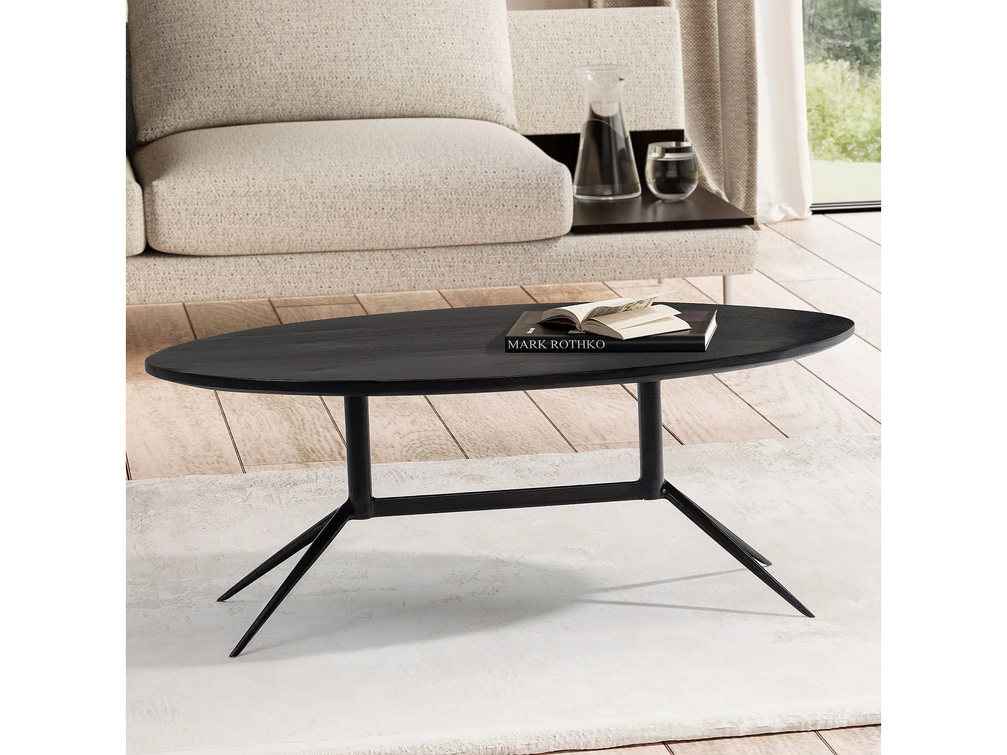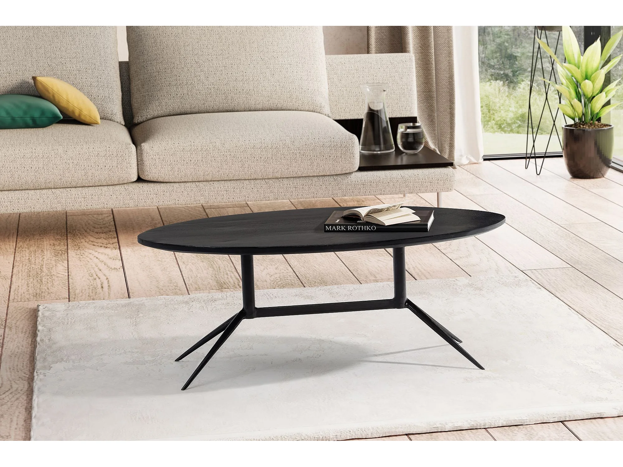 Table Basse Café de Salon Canapé Noir 60 cm Bois Massif Métal Ovale