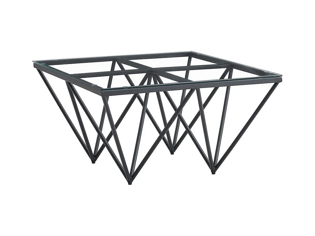 Table Basse carré GIZE pied métal noir et plateau en verre 80x80 cm