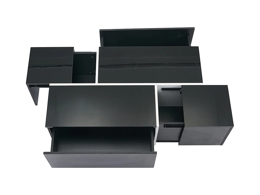 Table basse 70x70x40 cm noir brillante LED 4 tiroirs design géométrique charge 30 kg