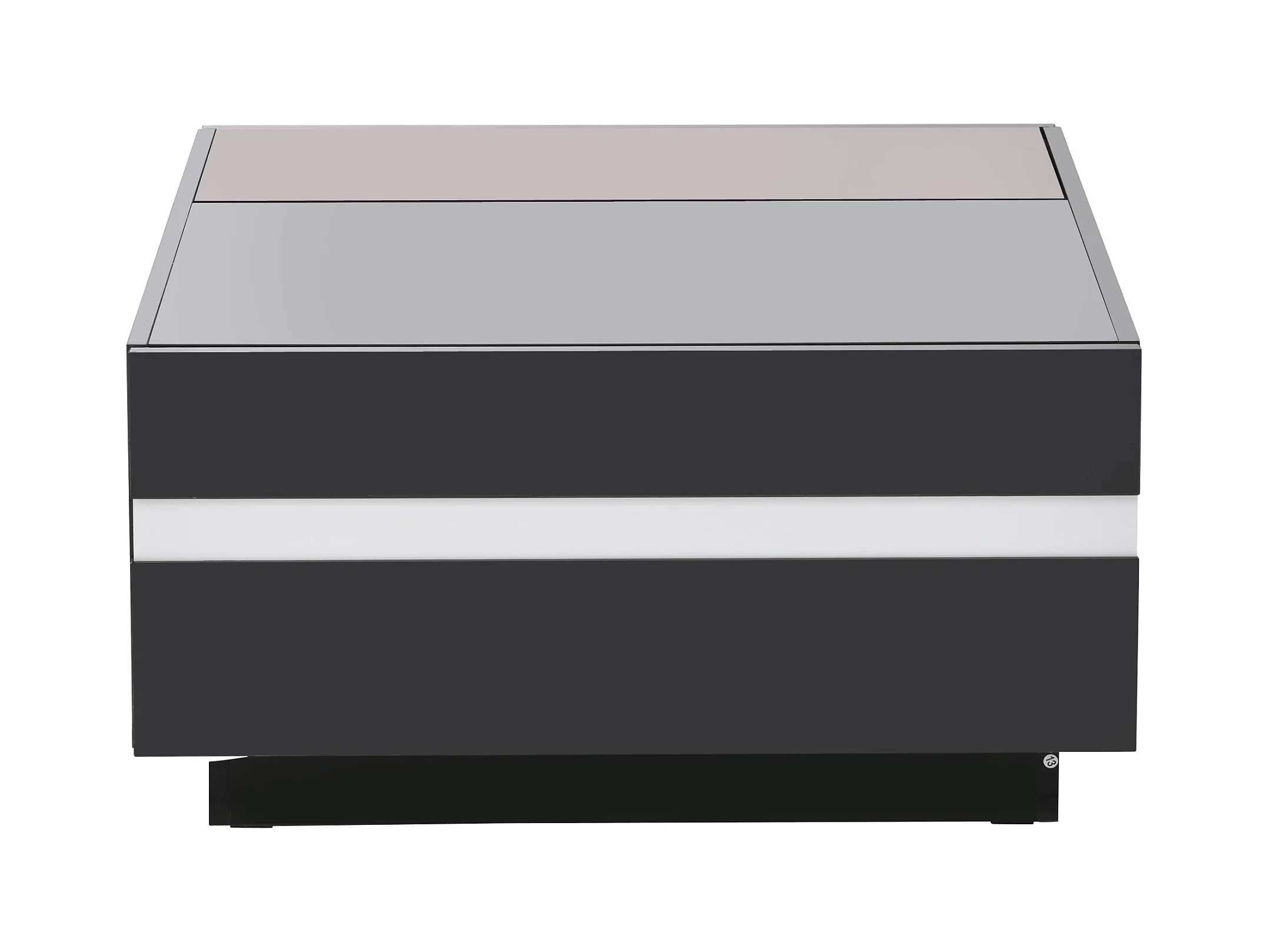 Table basse brillante - 70 x 70 x 40 cm - avec Leds + 4 tiroirs - Aggloméré - noir