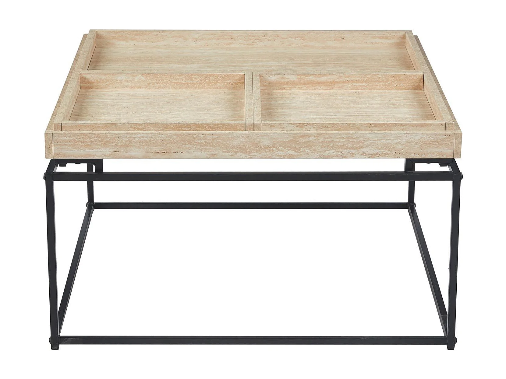 Table basse carrée avec plateau compartimenté réversible 80x80cm Duplix Effet Travertin Beige