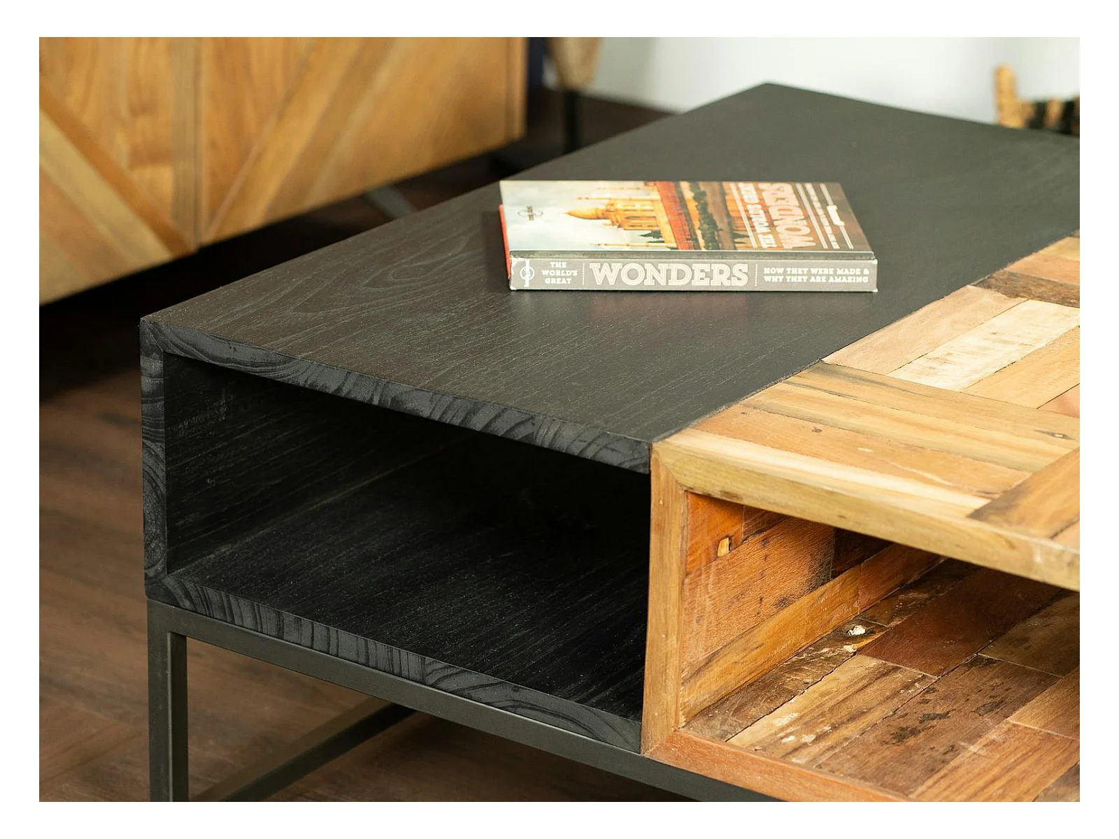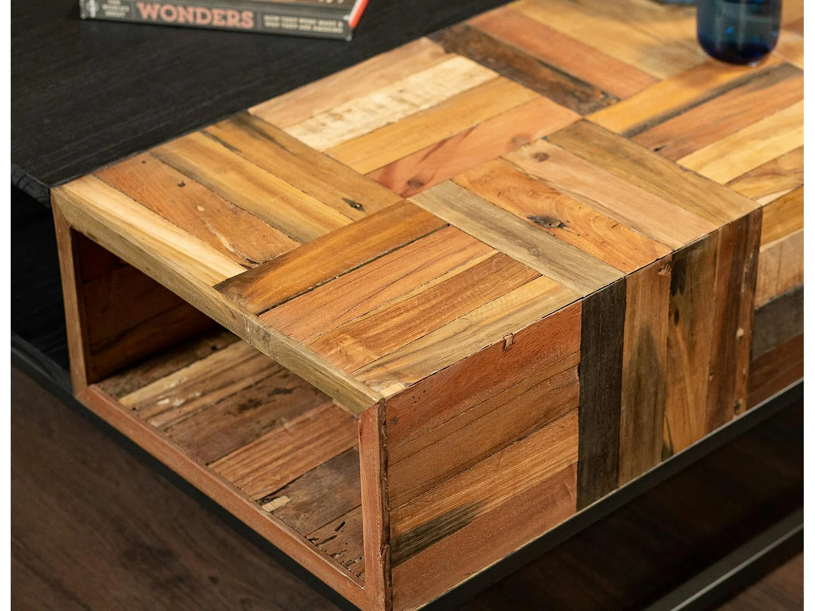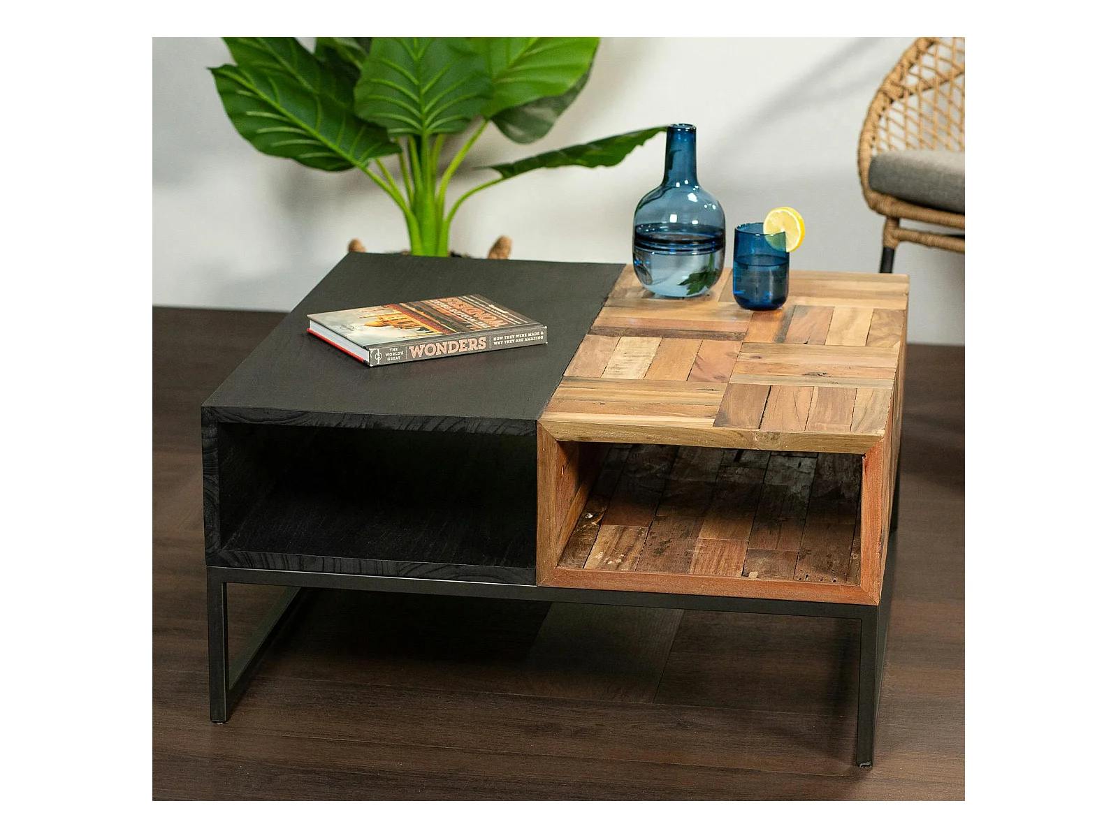 Table basse carrée bois recyclé de bateau métal DUMAI