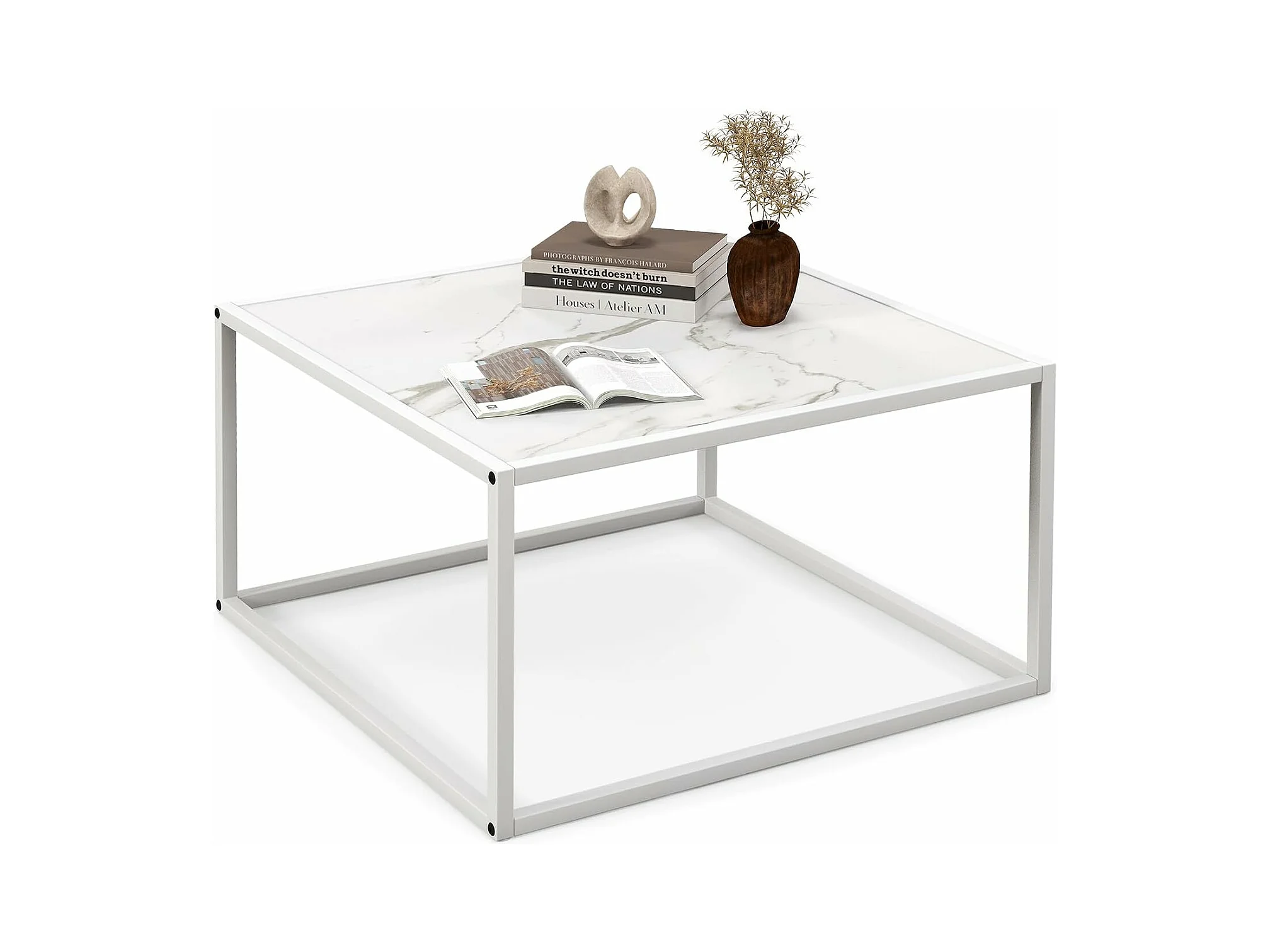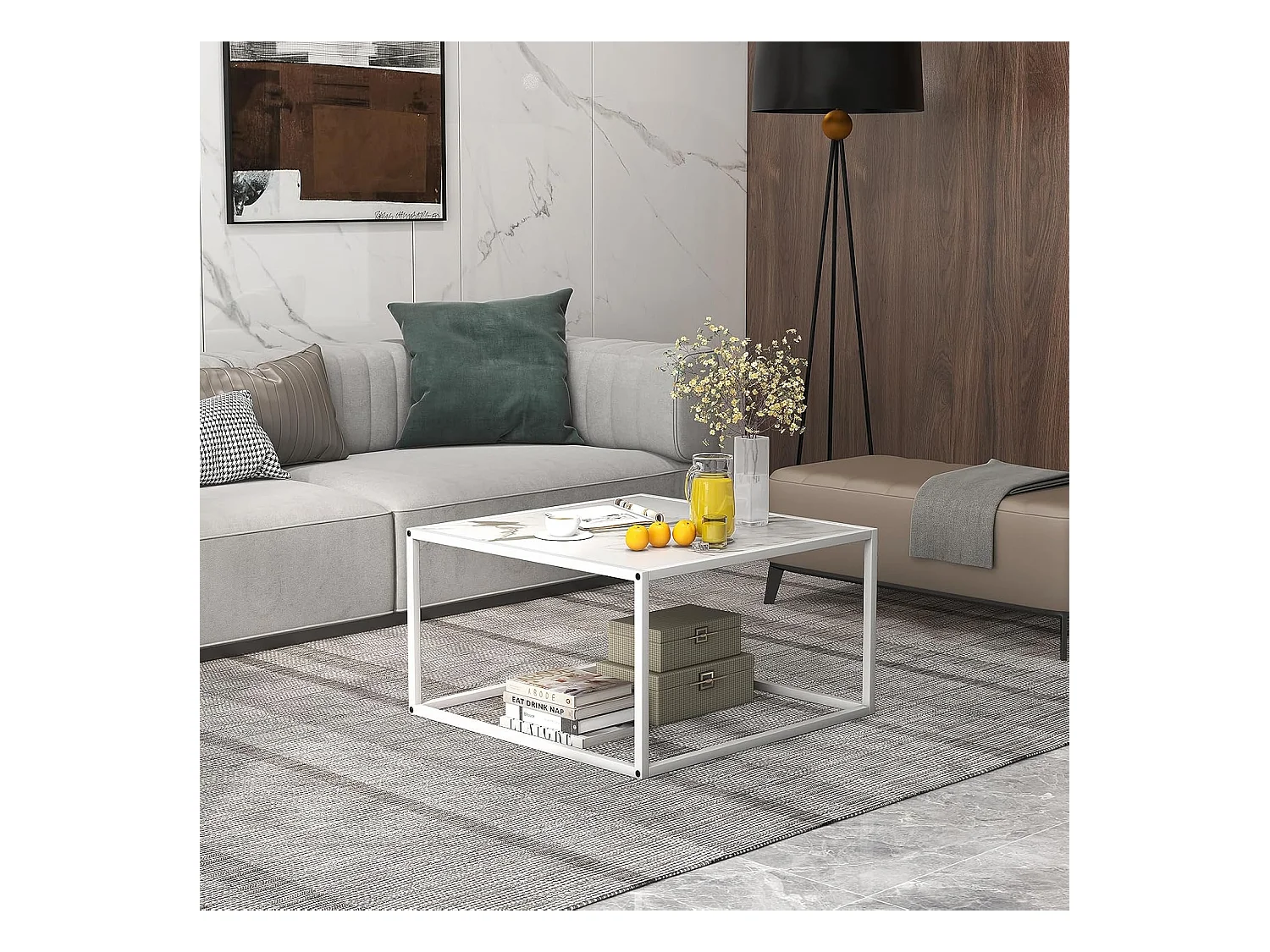 Table basse carrée, cadre métal, facile à installer, 70 x 70 x 40cm (blanc)