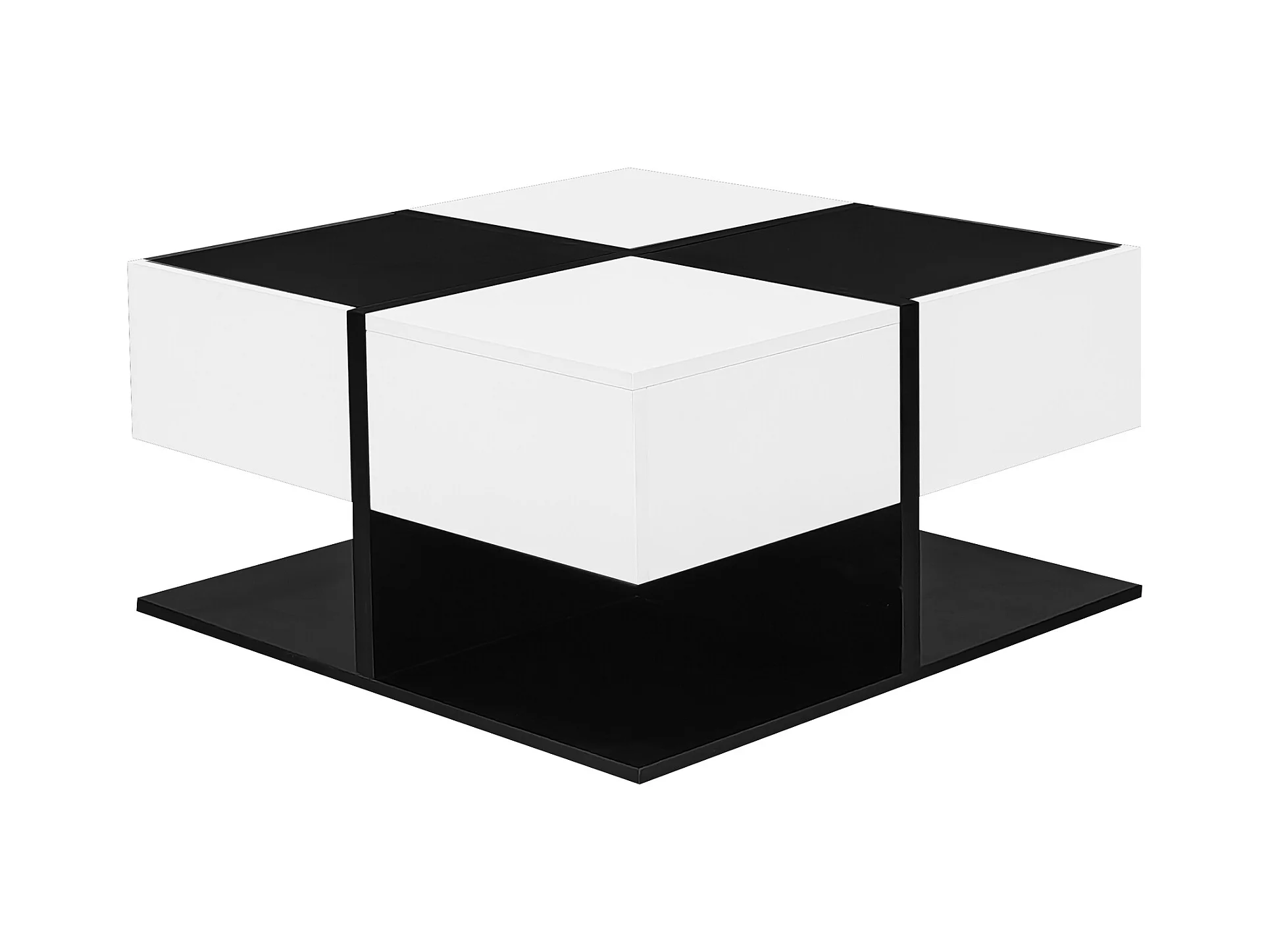 Table basse carrée noir et blanc - Table basse avec 2 tiroirs - panneau de particules