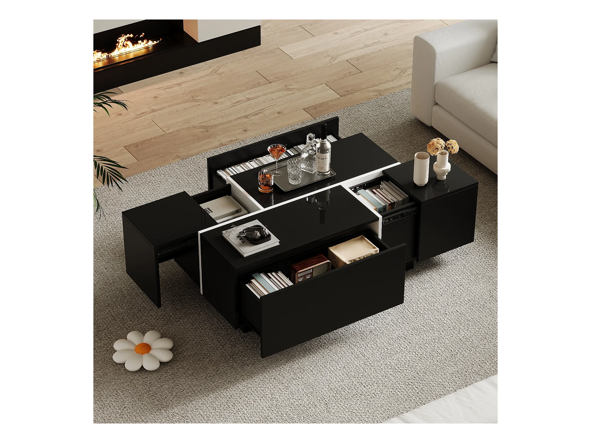 Table basse carrée noire avec 4 tiroirs coulissants – pour salon et bureaux
