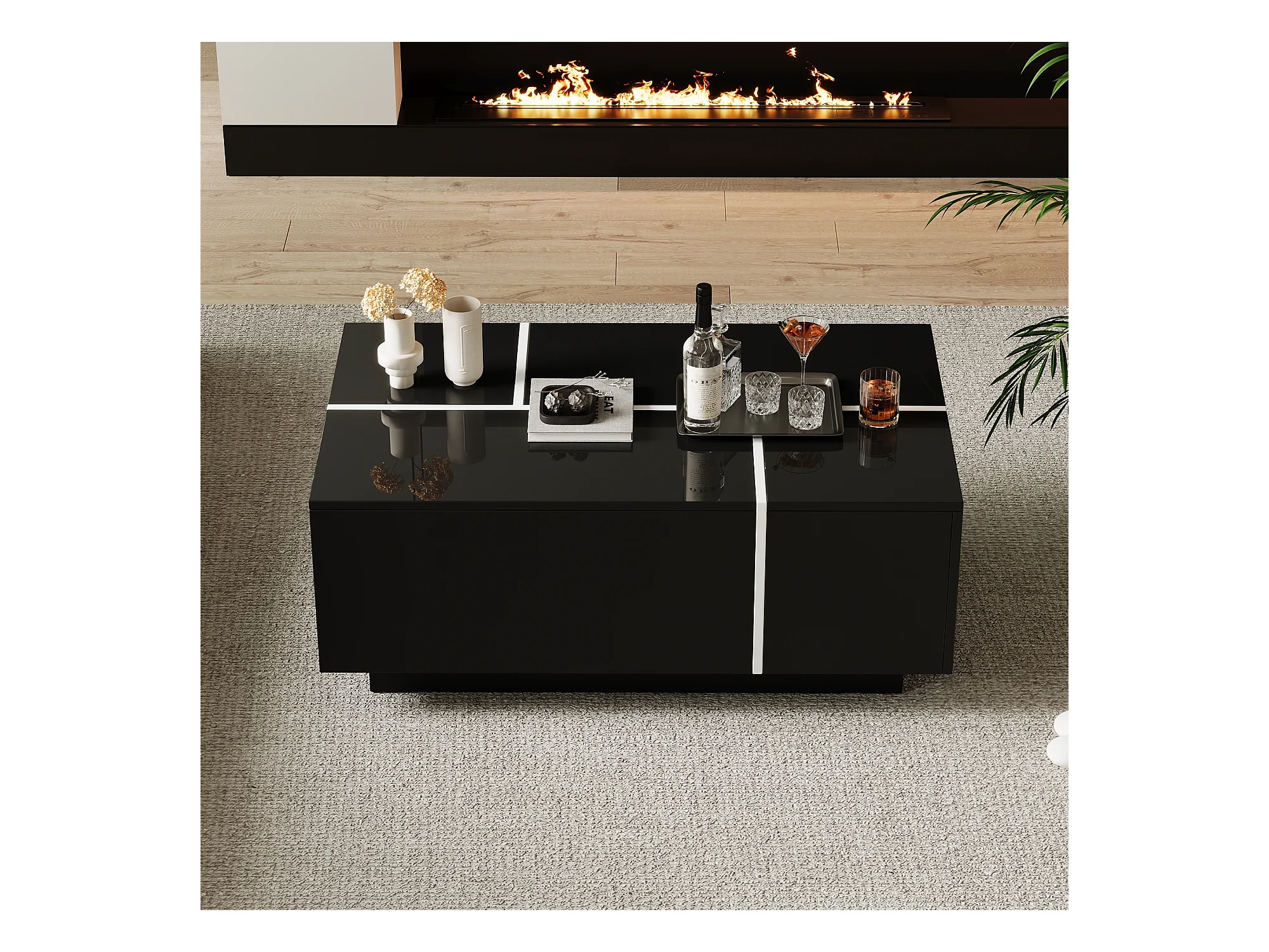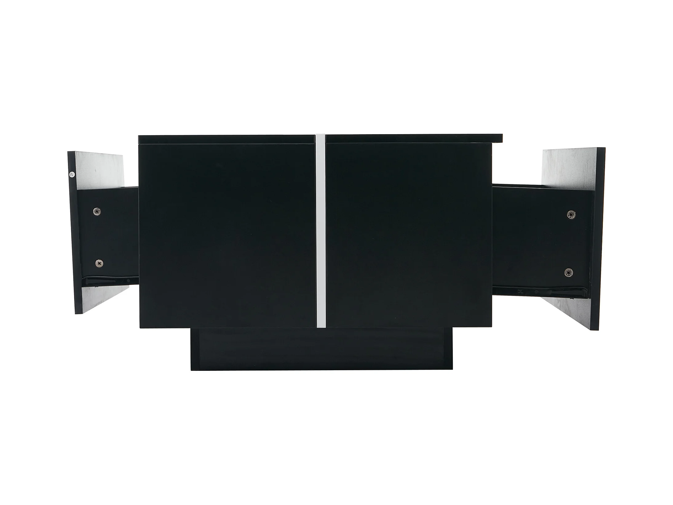 Table basse relevable noire - Table basse carrée avec éclairage LED et 2 tiroirs - rangement dissimulé