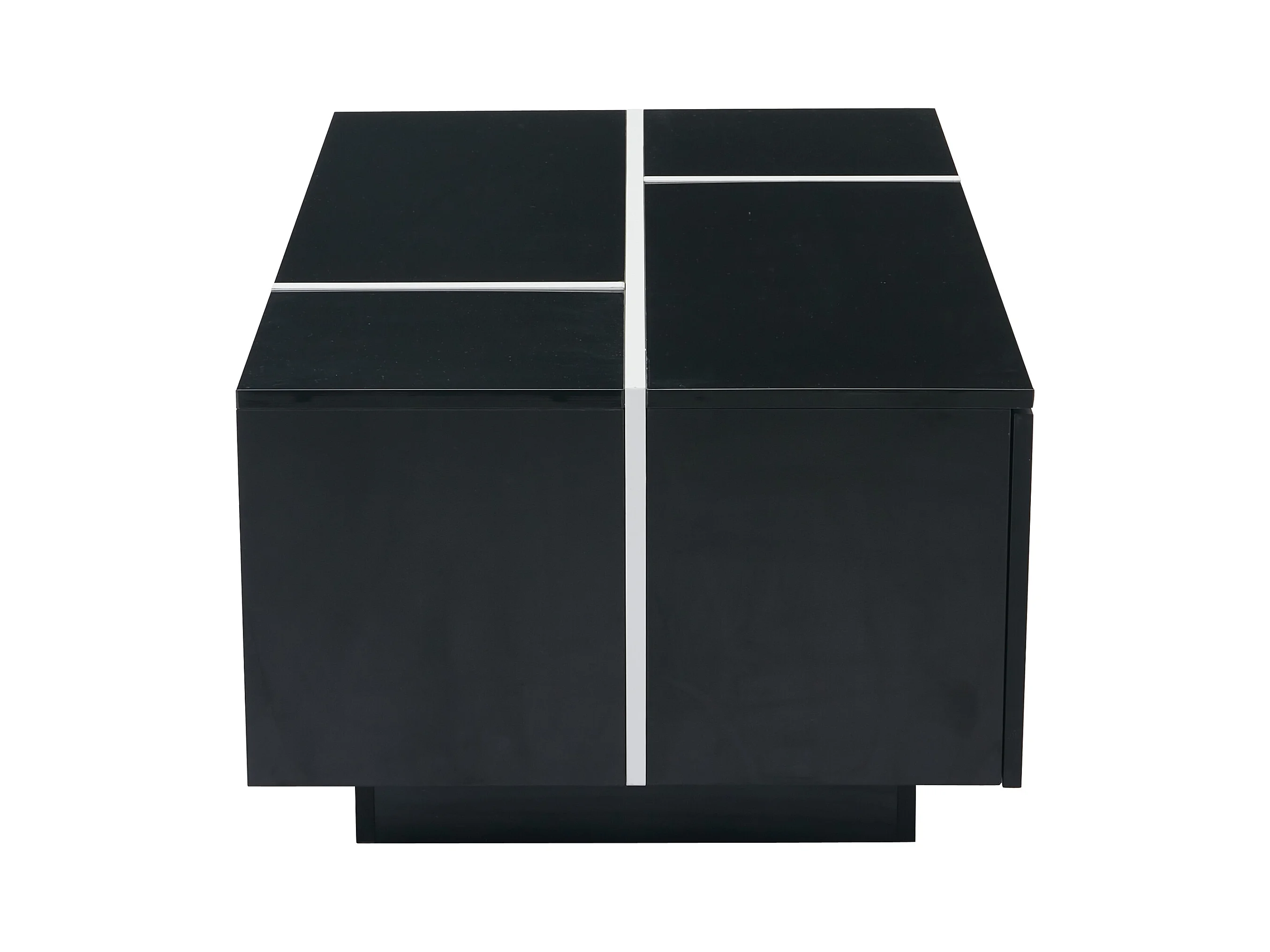 Table basse carrée noir - Table basse avec éclairage LED et 4 tiroirs - rangement ouvert