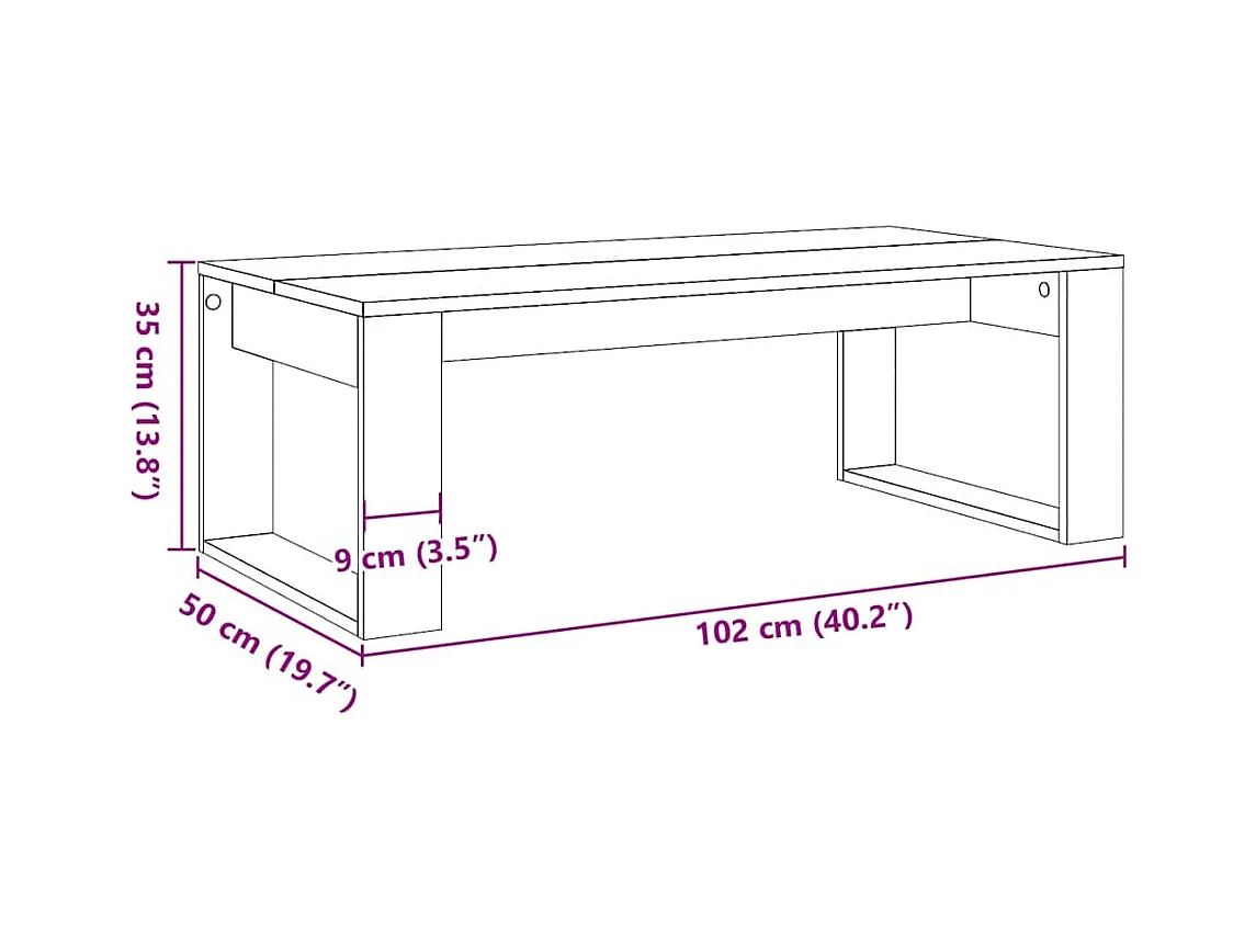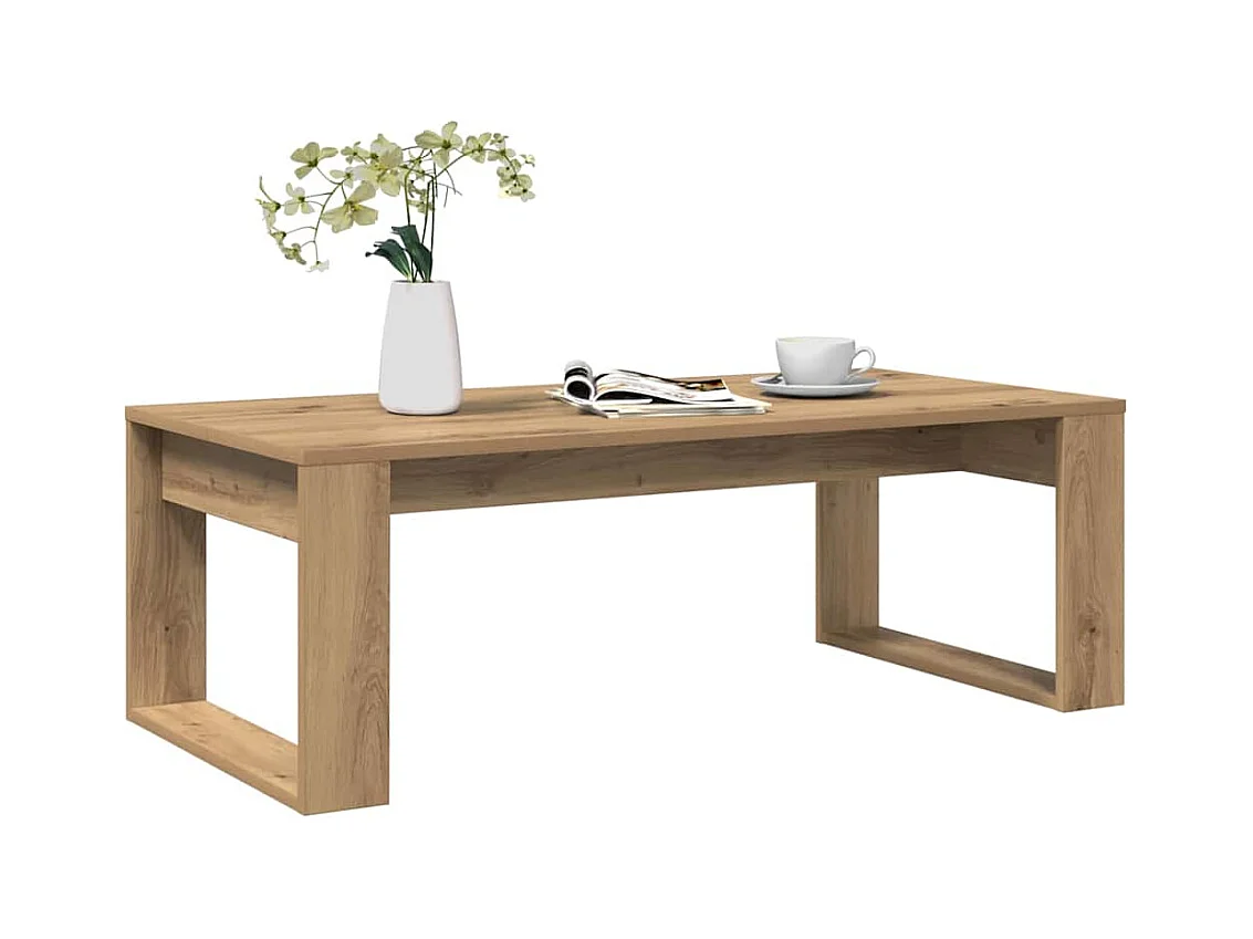 Table basse chêne artisanal 102x50x35 cm bois d'ingénierie