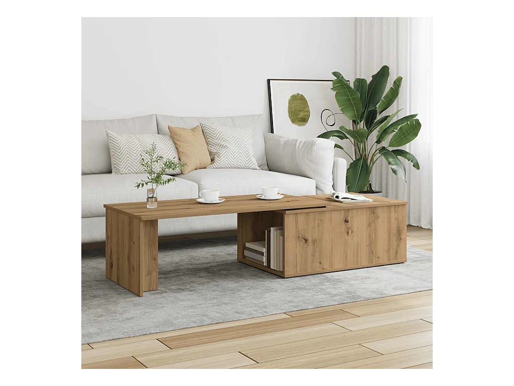 Table basse chêne artisanal 150x50x35 cm bois d'ingénierie