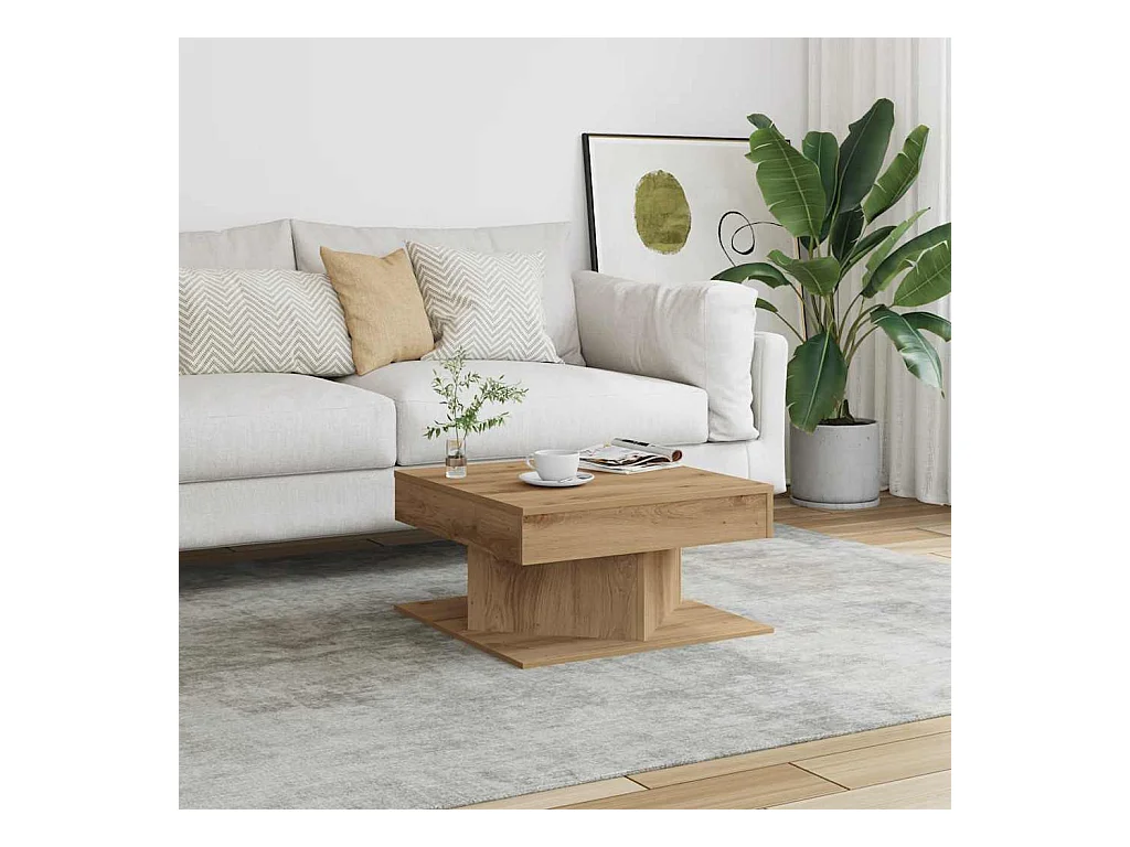 Table basse chêne artisanal 60x60x30 cm bois d'ingénierie