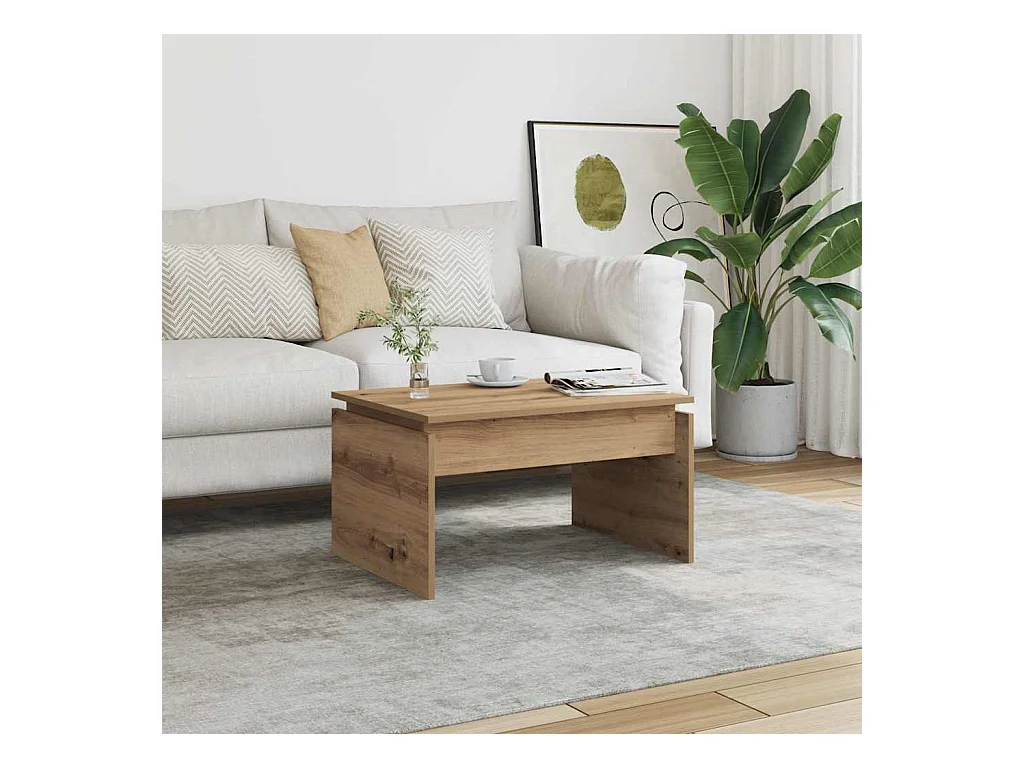 Table basse chêne artisanal 68x50x38 cm bois d'ingénierie