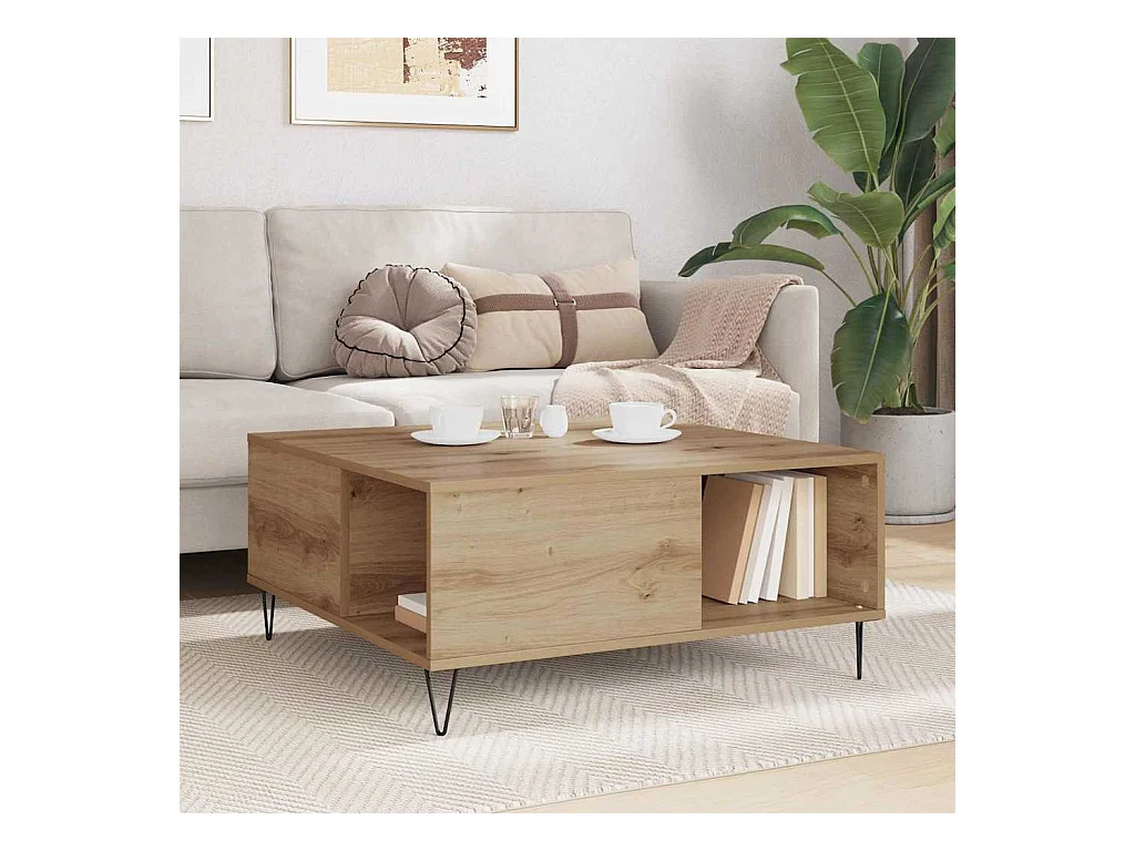 Table basse chêne artisanal 80 x 80 x 36,5 cm Bois d'ingénierie