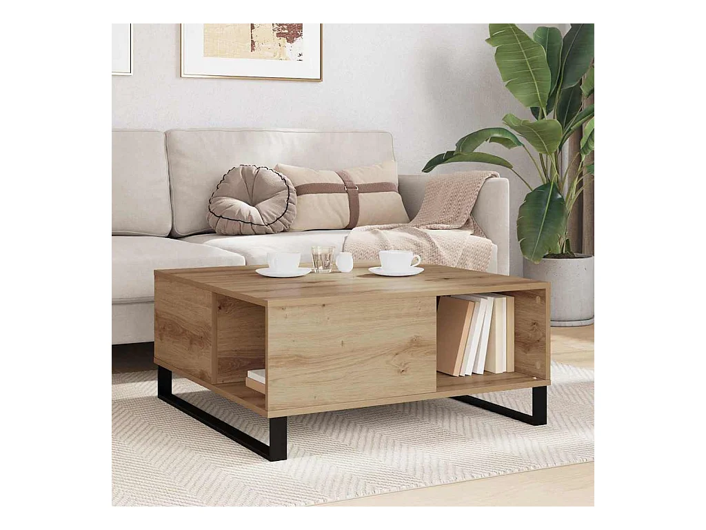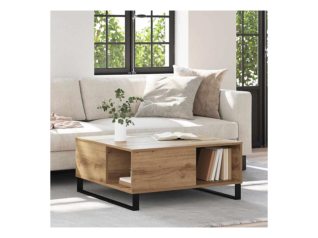 Table basse chêne artisanal 80 x 80 x 36,5 cm Bois d'ingénierie