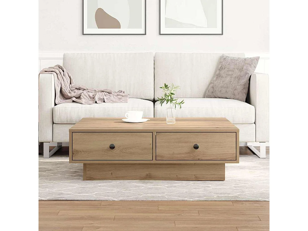 Table basse chêne artisanal 90 x 90 x 28 cm Bois d'ingénierie