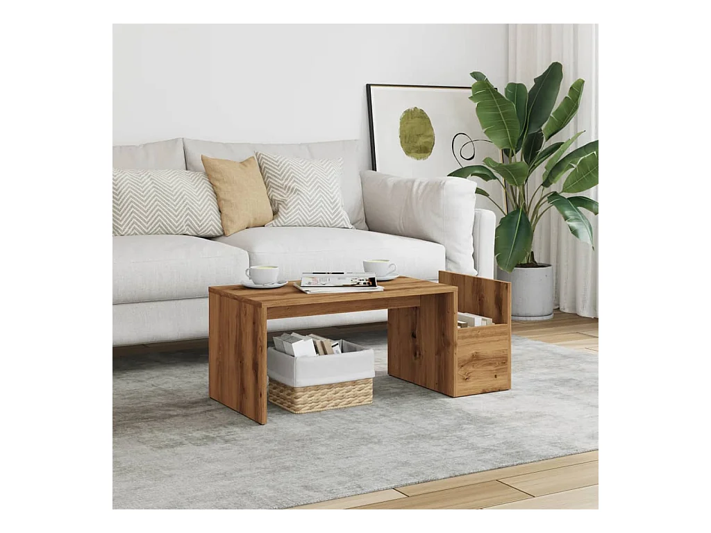Table basse chêne artisanal 90x45x35 cm bois d'ingénierie