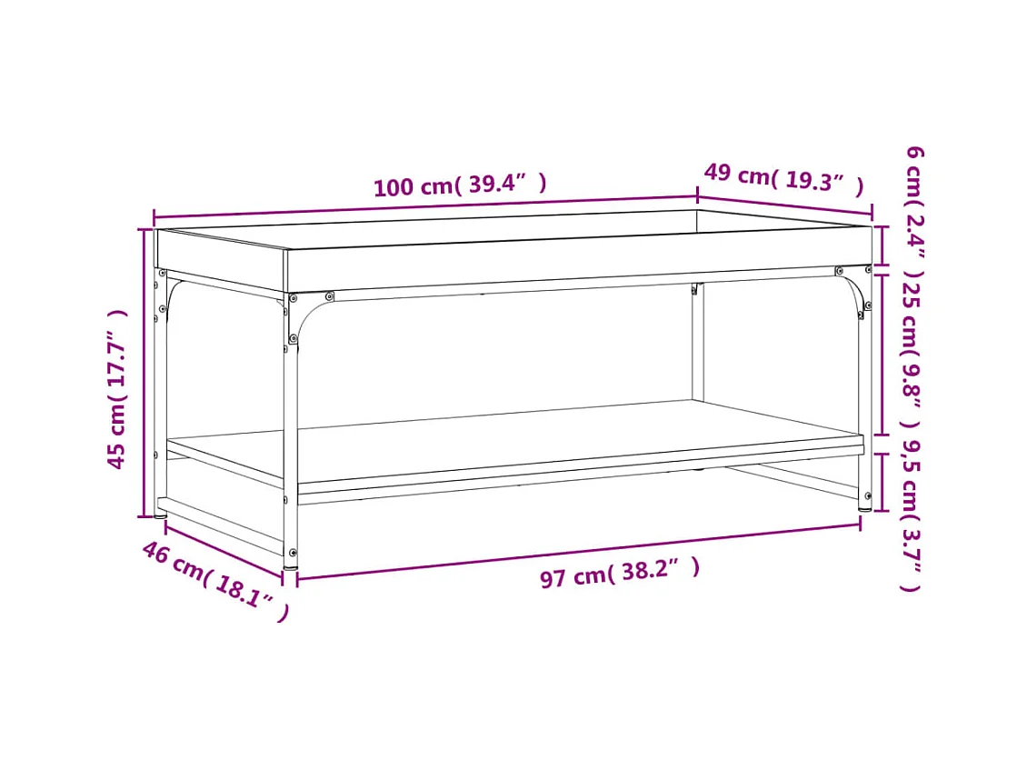 Table basse chêne fumé 100x49x45 cm bois d'ingénierie