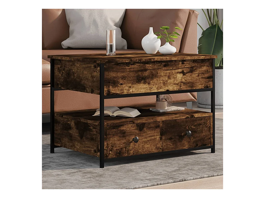 Table basse chêne fumé 70x50x50 bois d'ingénierie et métal