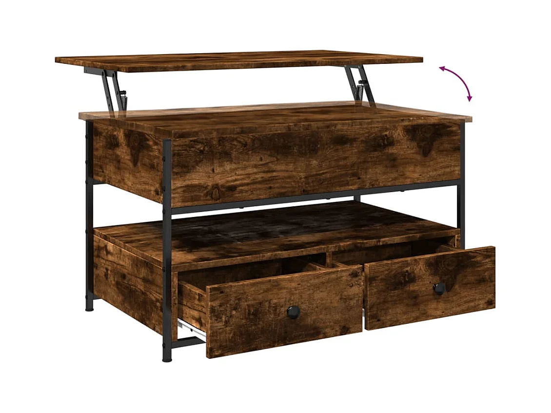 Table basse chêne fumé 85x50x50 bois d'ingénierie et métal