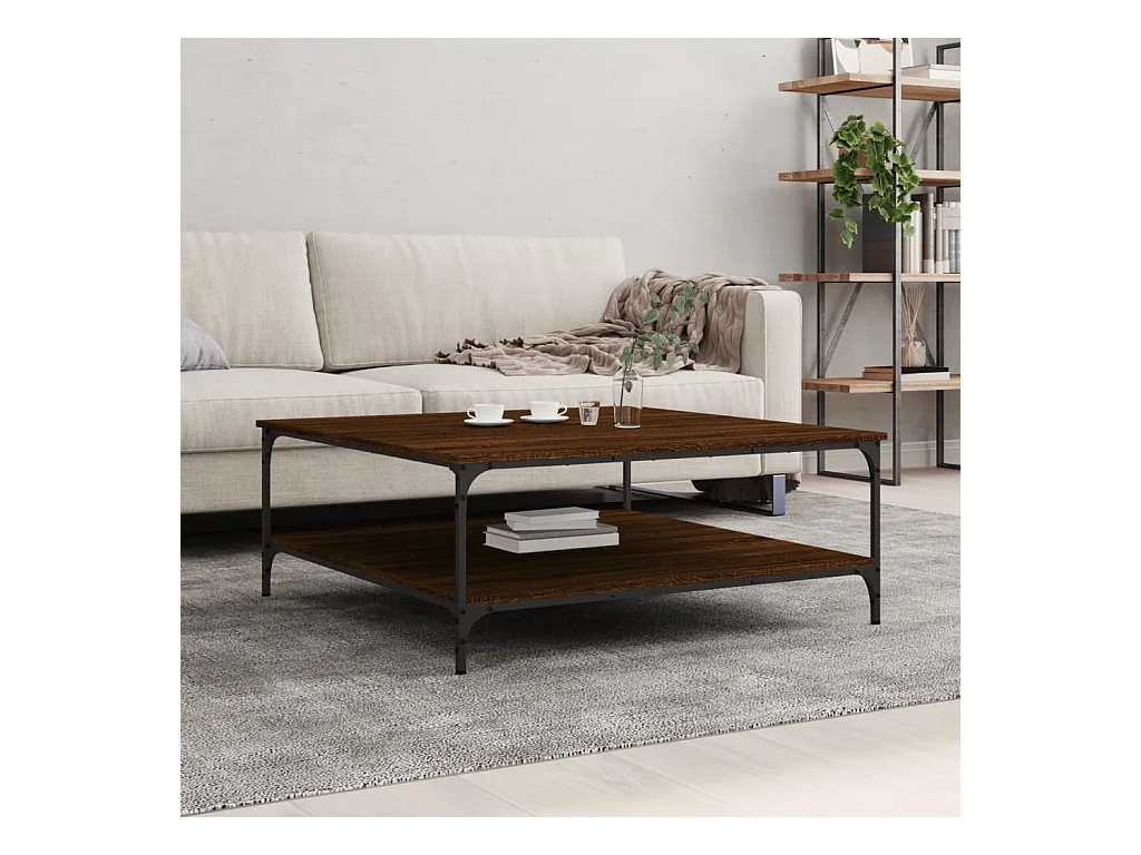 Table basse chêne fumé 100x100x48,5 cm bois d'ingénierie