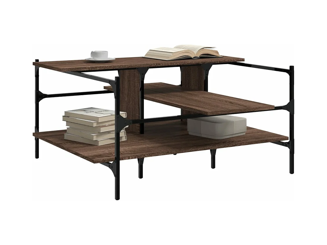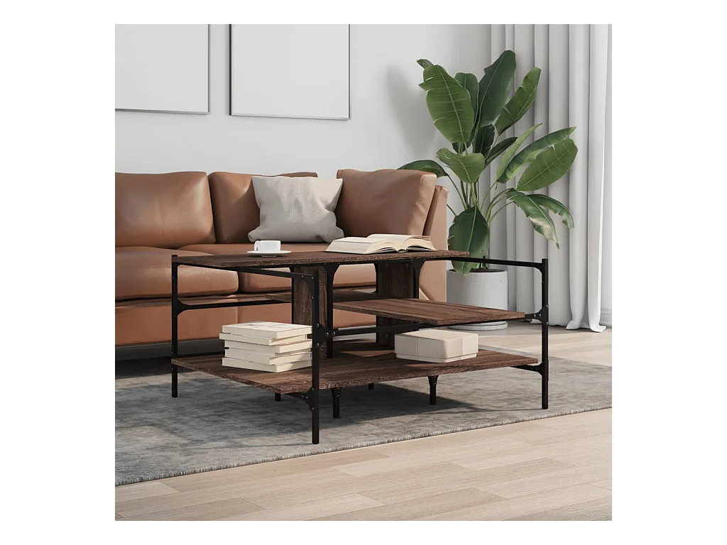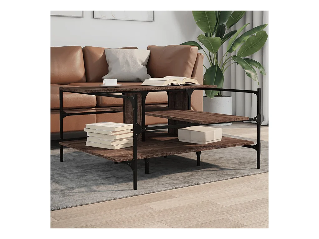 Table basse chêne fumé 100x100x48,5 cm bois d'ingénierie