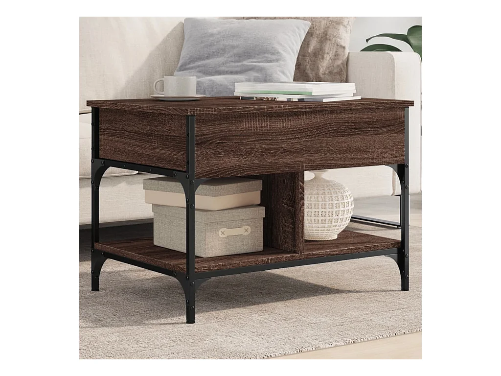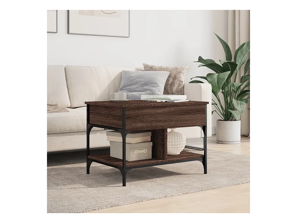 Table basse chêne marron 70x50x50 cm bois d'ingénierie et métal