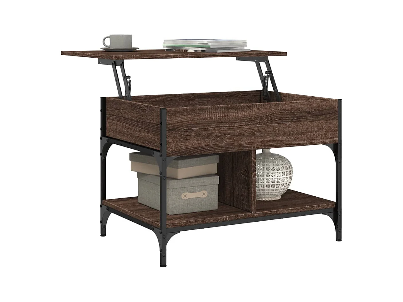 Table basse chêne fumé 100x50x50 cm bois d'ingénierie et métal