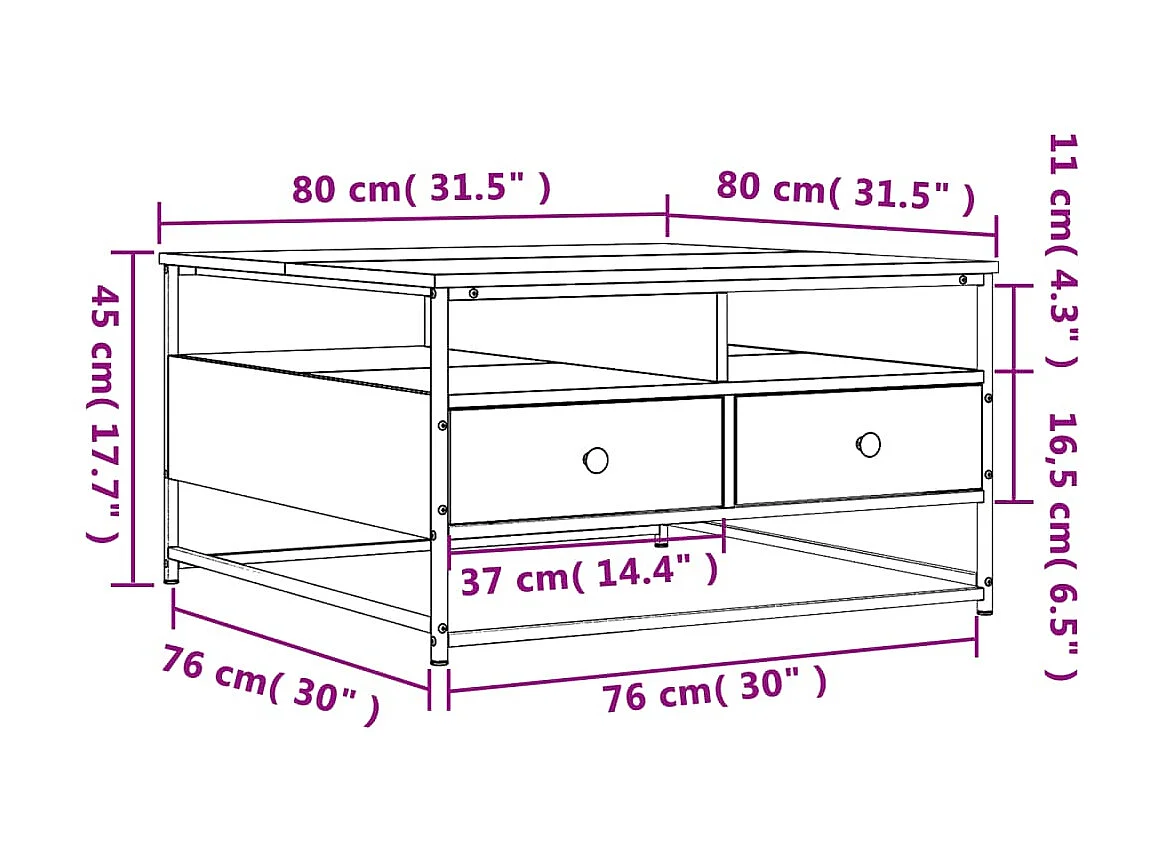Table basse chêne sonoma 80x80x45 cm bois d'ingénierie et métal