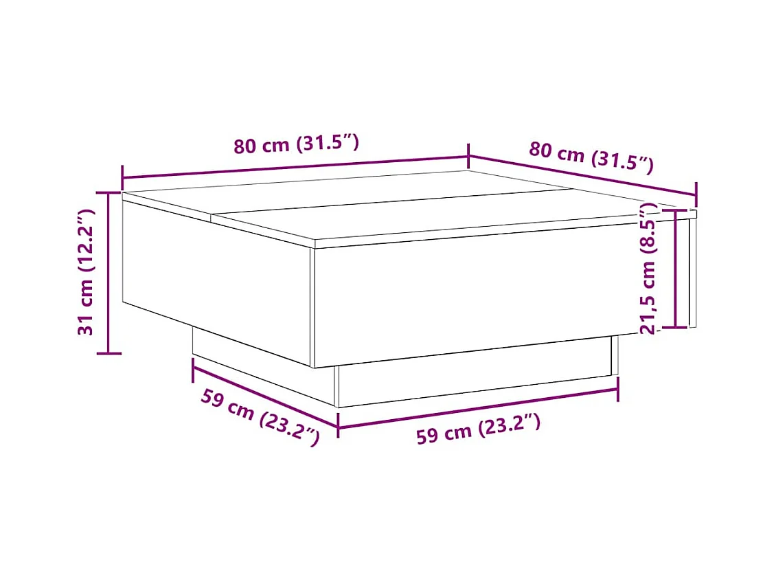 Table basse avec lumières LED noir 80x80x31 cm