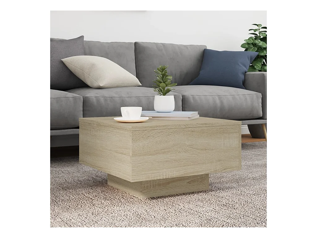 Table basse avec lumières LED chêne sonoma 55x55x31 cm