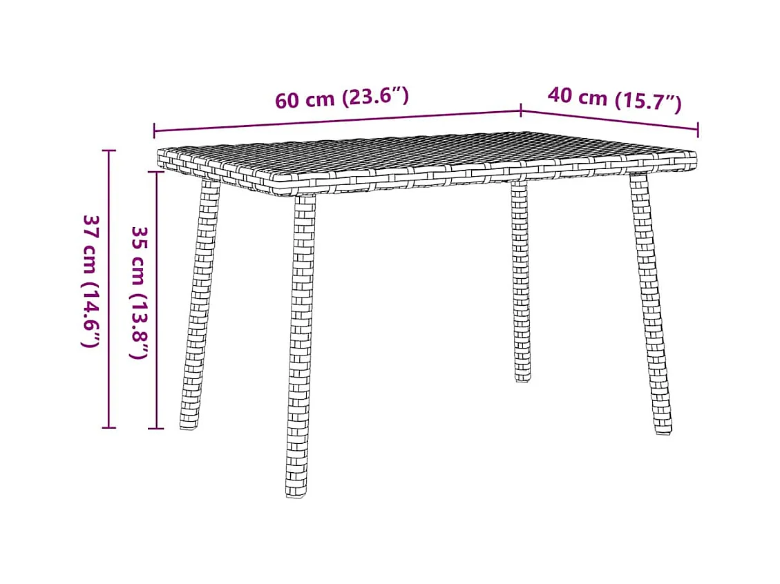 Table basse de jardin rectangulaire gris 60x40x37 cm rotin