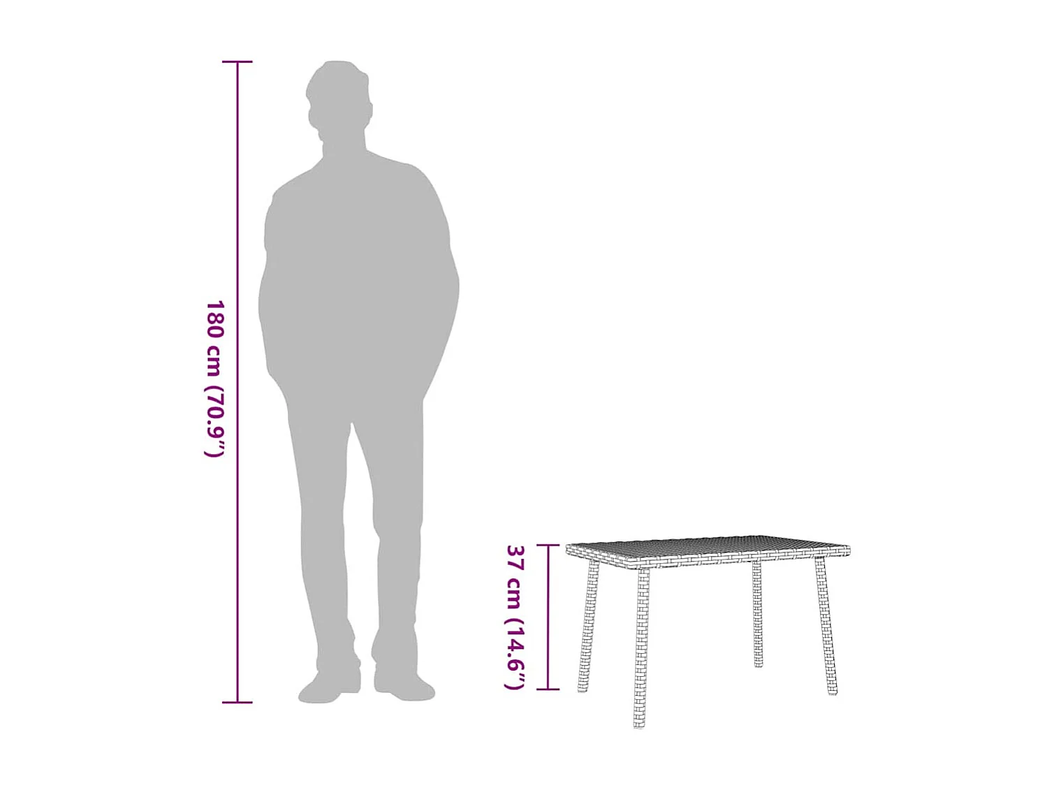 Table basse de jardin rectangulaire gris 80x40x37 cm rotin