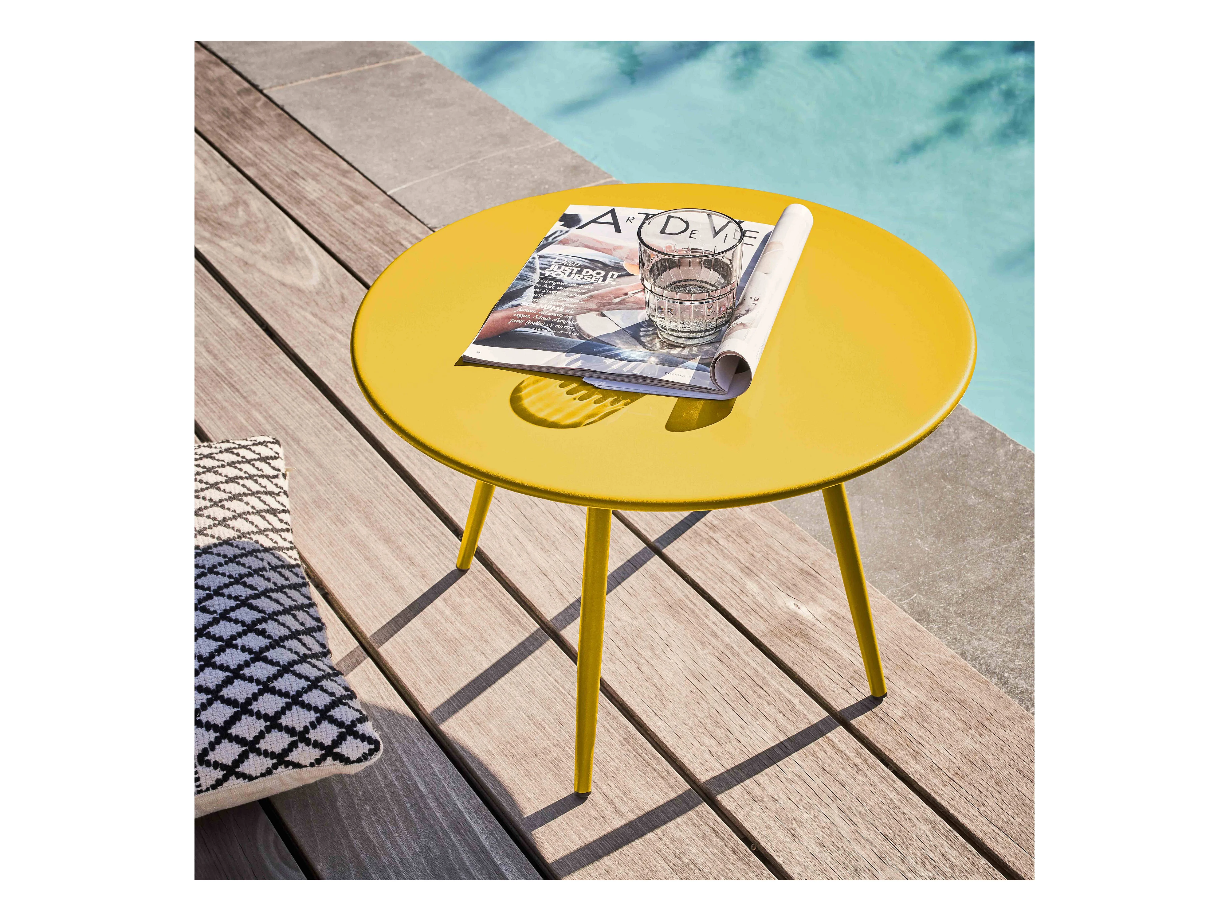 Table basse de jardin ronde en métal jaune 50 cm - Palavas