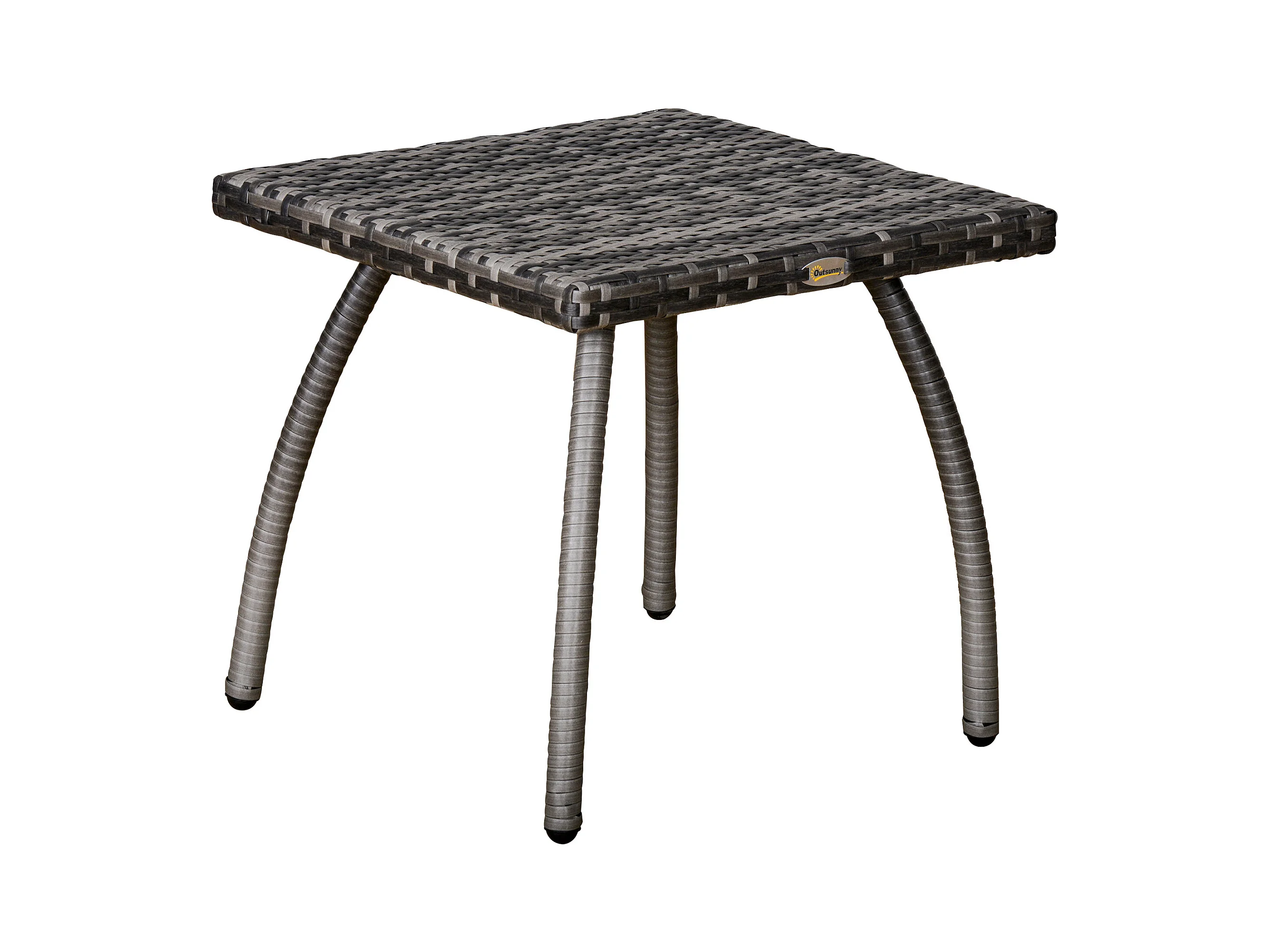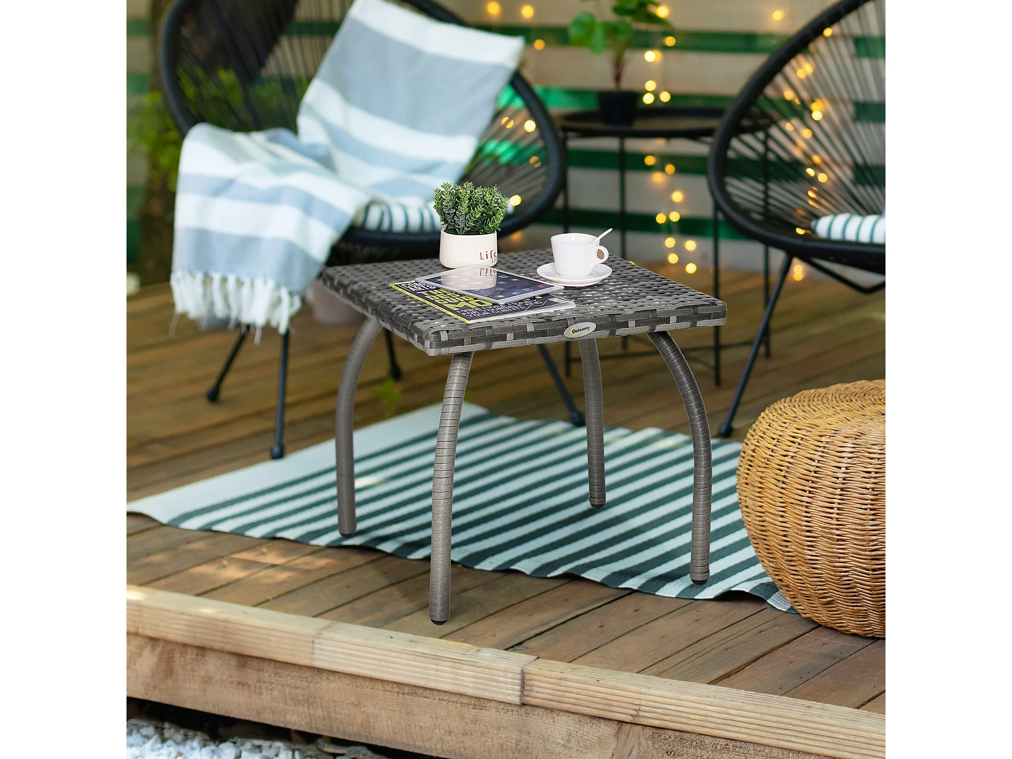 Table basse de jardin style cosy chic table d'appoint métal époxy résine tressée imitation rotin gris