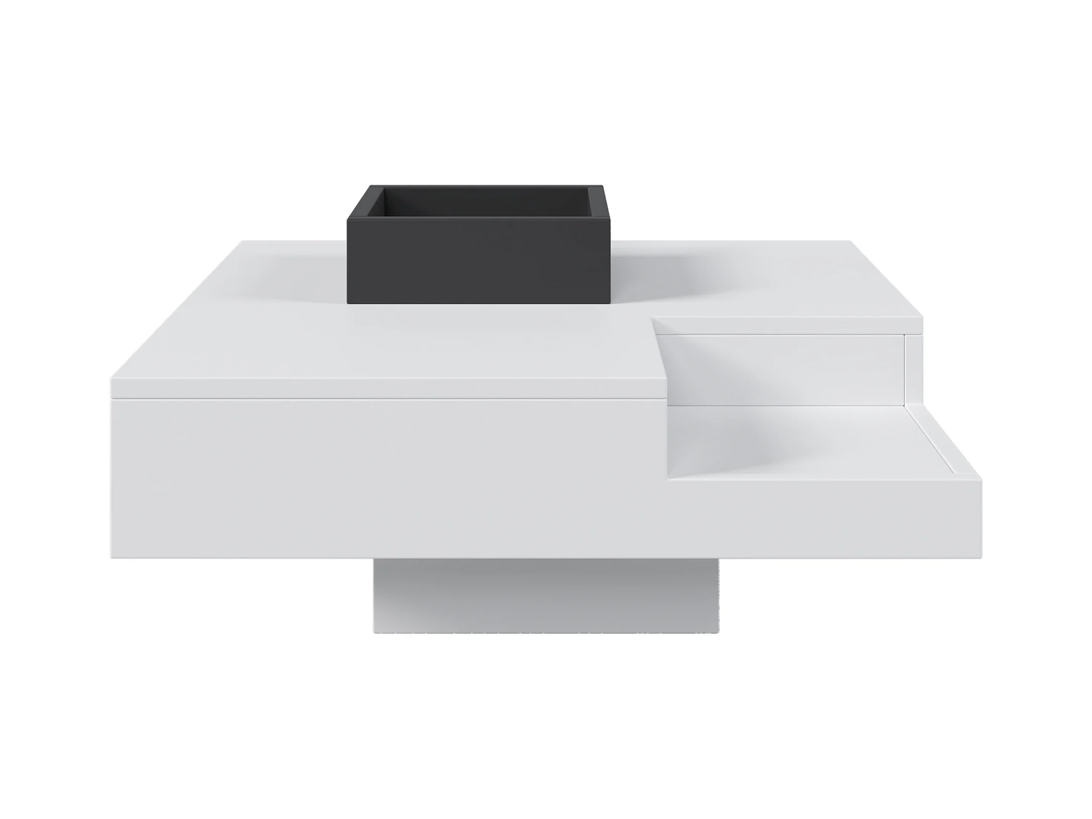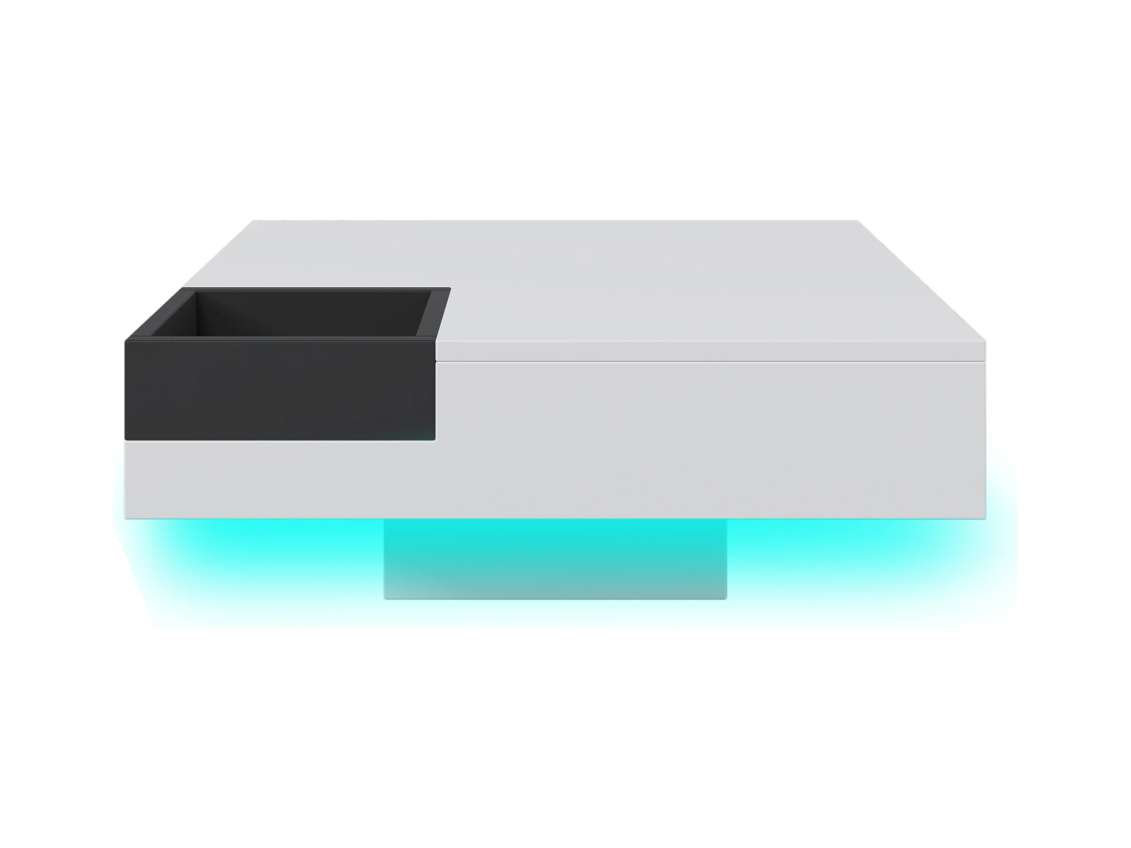 Table basse de salon 72x72x30 cm - Table basse blanche avec coffre de rangement amovible - éclairage LED