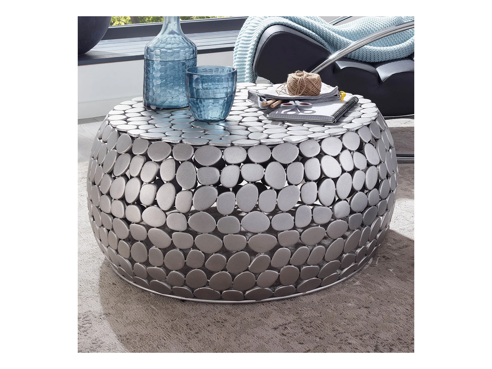 Table Basse de Salon Aluminium Argent 66x66x32 cm Ronde Métal | Petite Table de Canapé | Design Table d'appoint Style Moderne