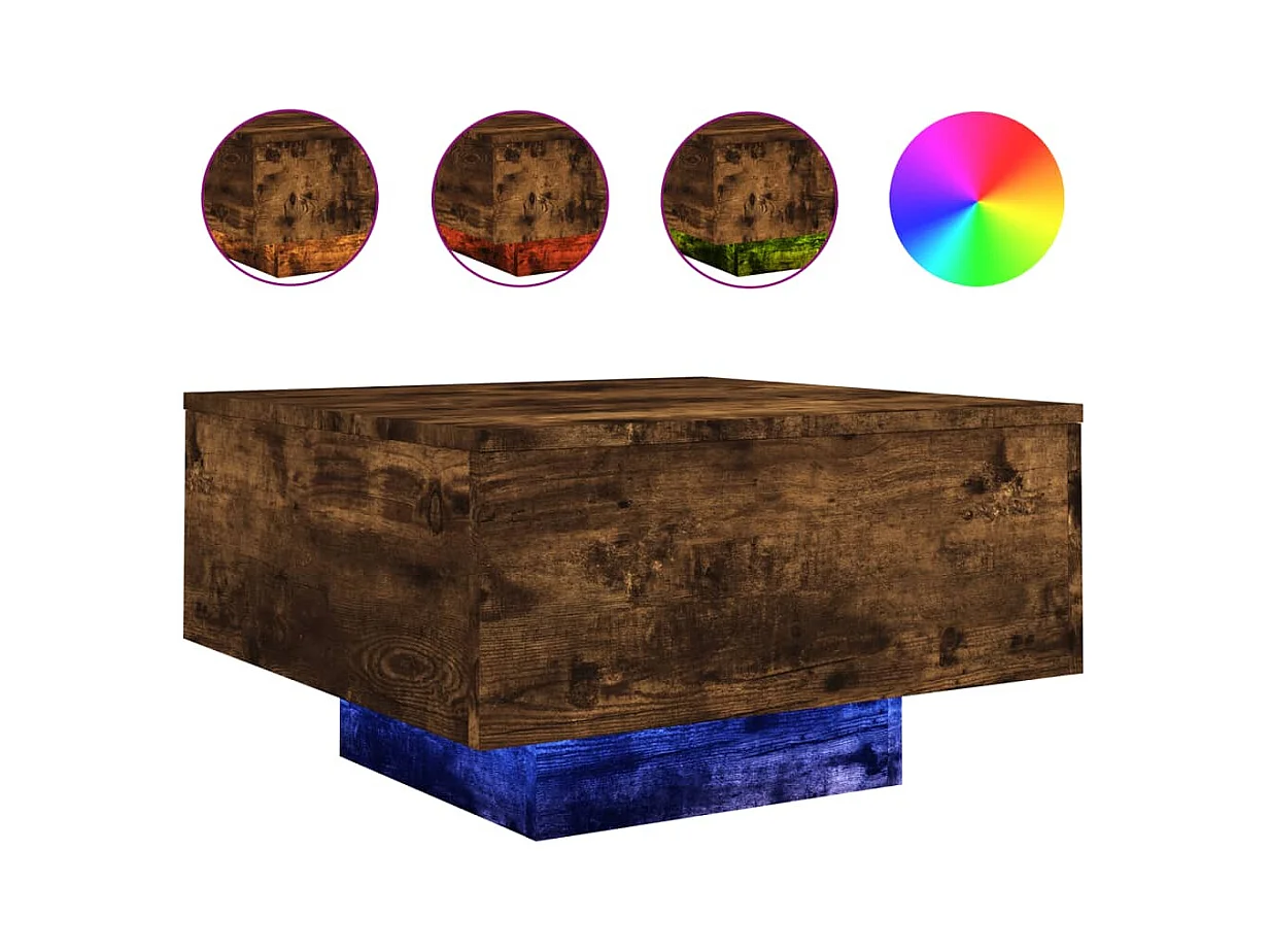 Table basse avec lumières LED chêne fumé 55x55x31 cm
