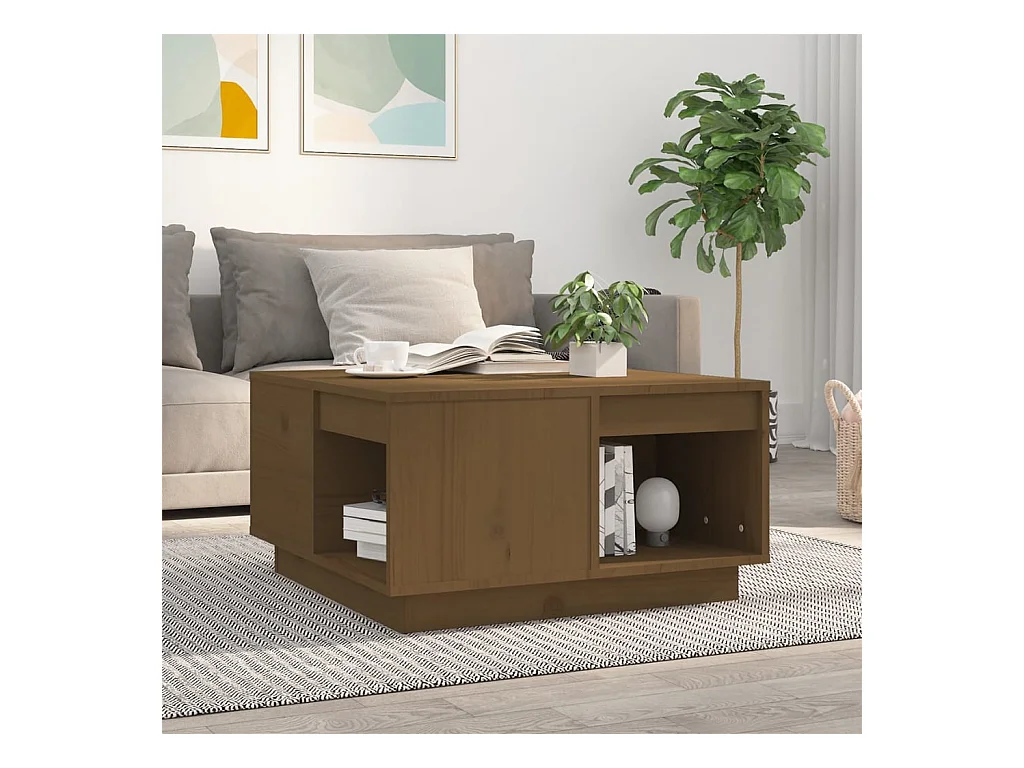 Table basse Marron miel 60x61x32,5 cm Bois massif de pin OFR12312 BonneVie Meuble