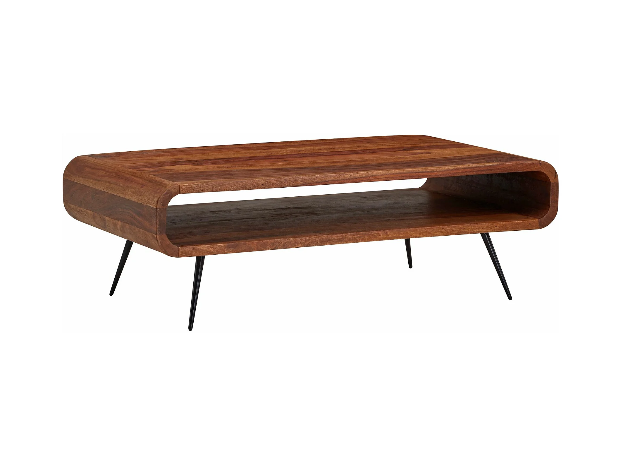 Table Basse de Salon Sheesham Bois Massif et Métal 90x55x30 cm Rectangulaire | Table de Canapé avec Rangement Marron | Design Table d'appoint Style Moderne