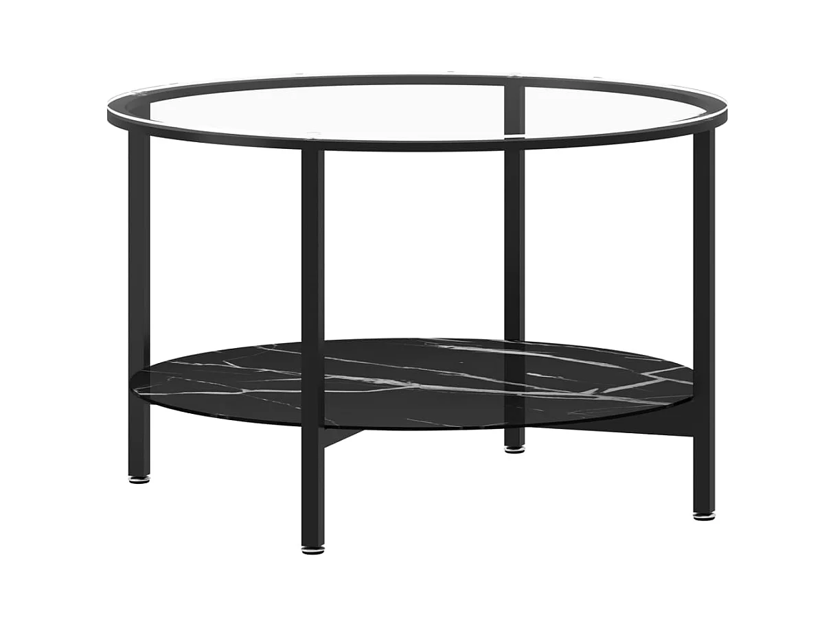 Table à thé Noir et marbre noir 70 cm Verre trempé