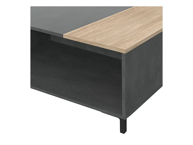 Table basse décor béton gris chêne clair et pieds noir - MADDY