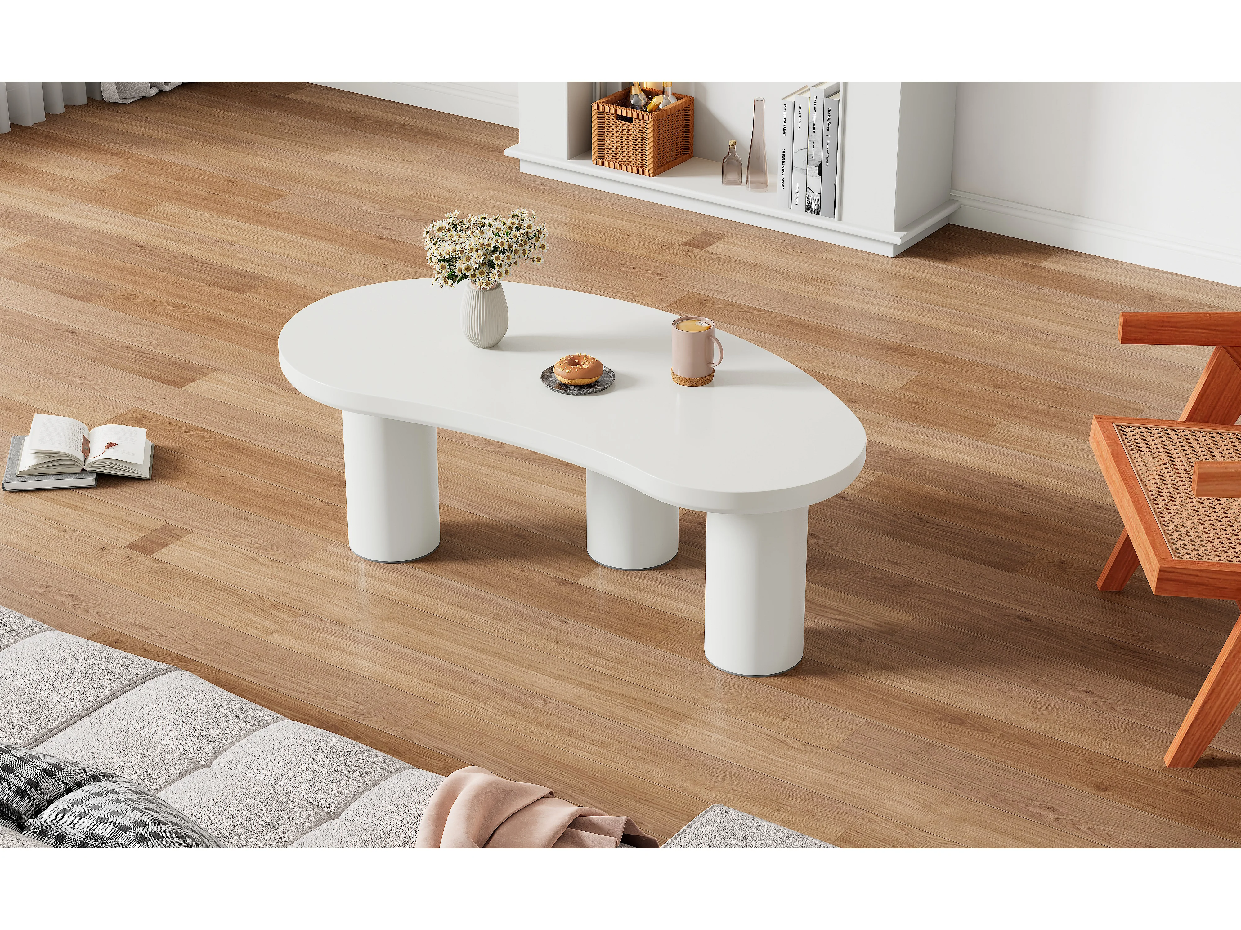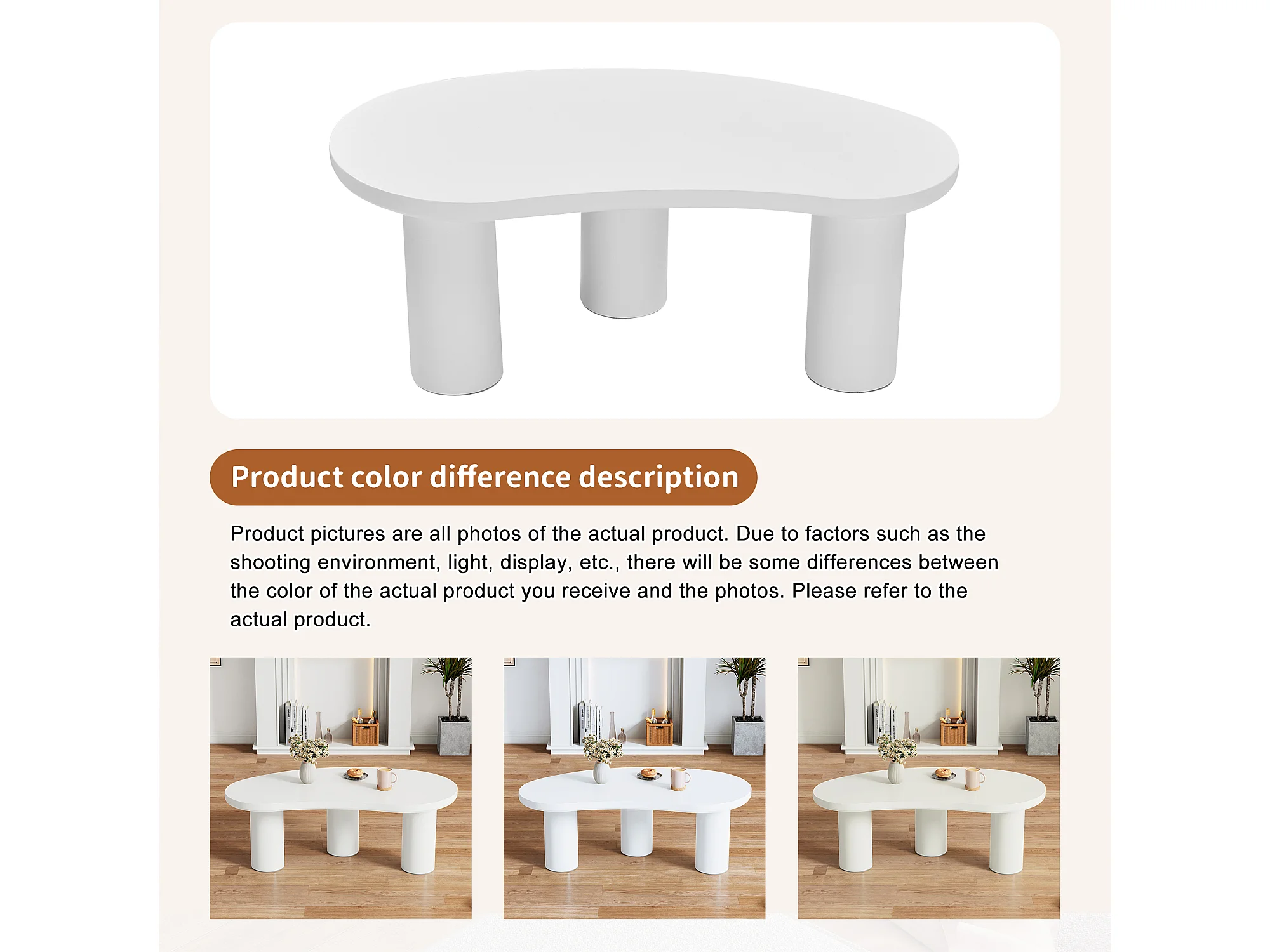 Table basse demi-lune irrégulière, design moderne, MDF et PVC, blanc (107x57x40.5cm)