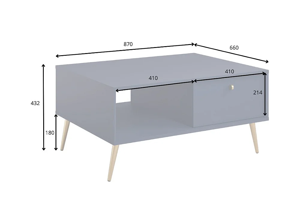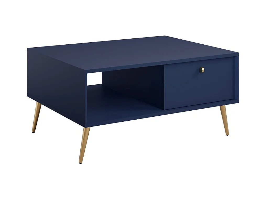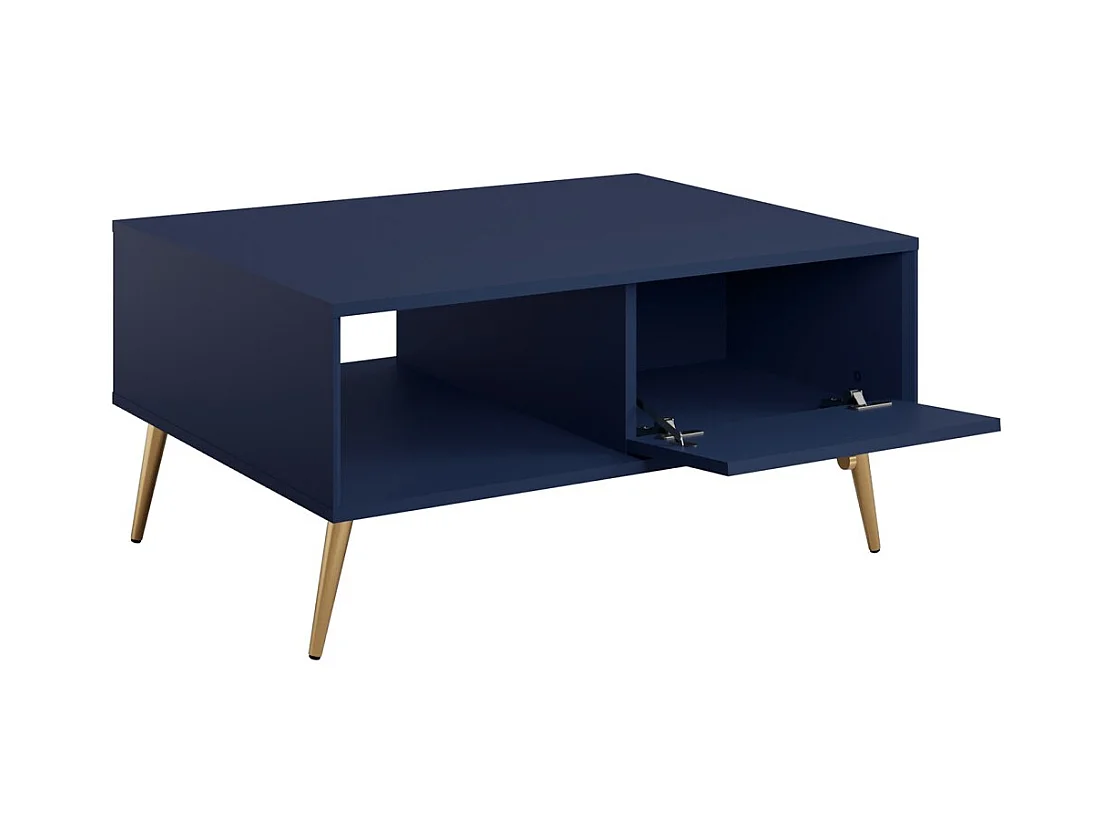 Table basse design AZURÉA – Niche + 1 porte abattante – Bleu profond – 87x43x66 cm