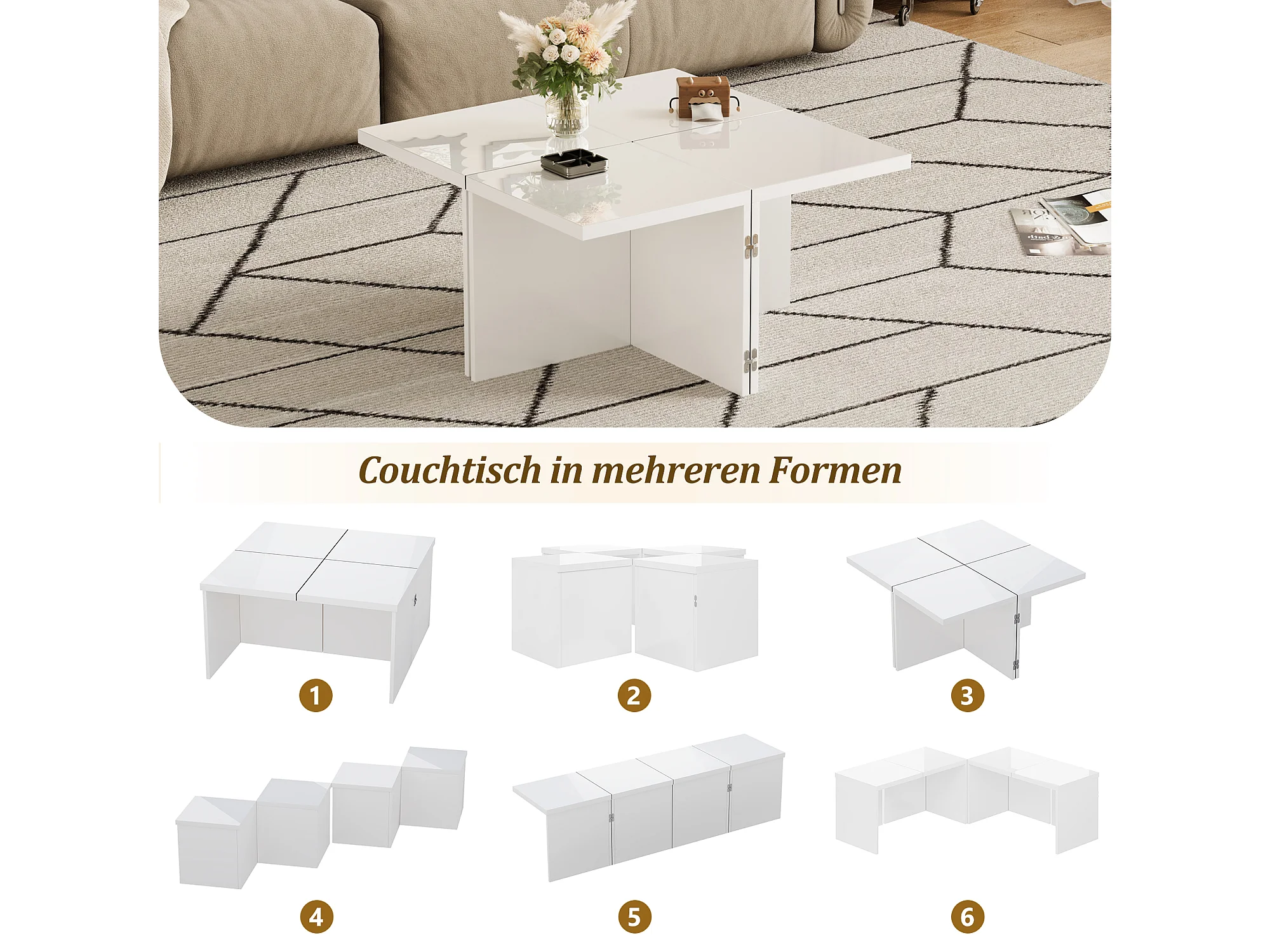 Table basse DIY avec surface laquée, design modulaire, 81x81x40 cm, combinable