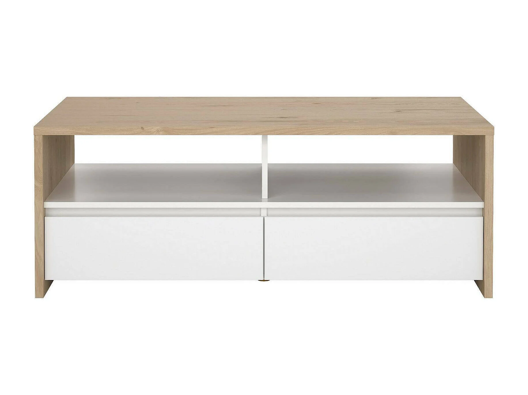 Table basse Dvandell, Table basse, Porte-revues pour canapé, Etagère de salon, 120x60 h46 cm, Chêne clair et Blanc