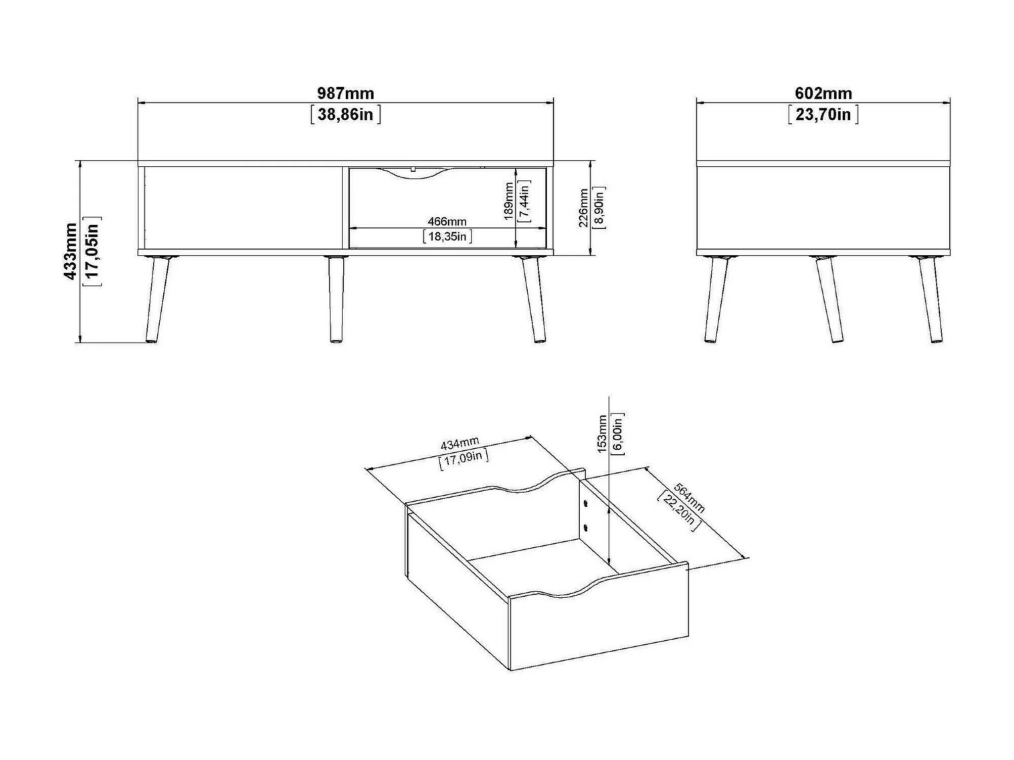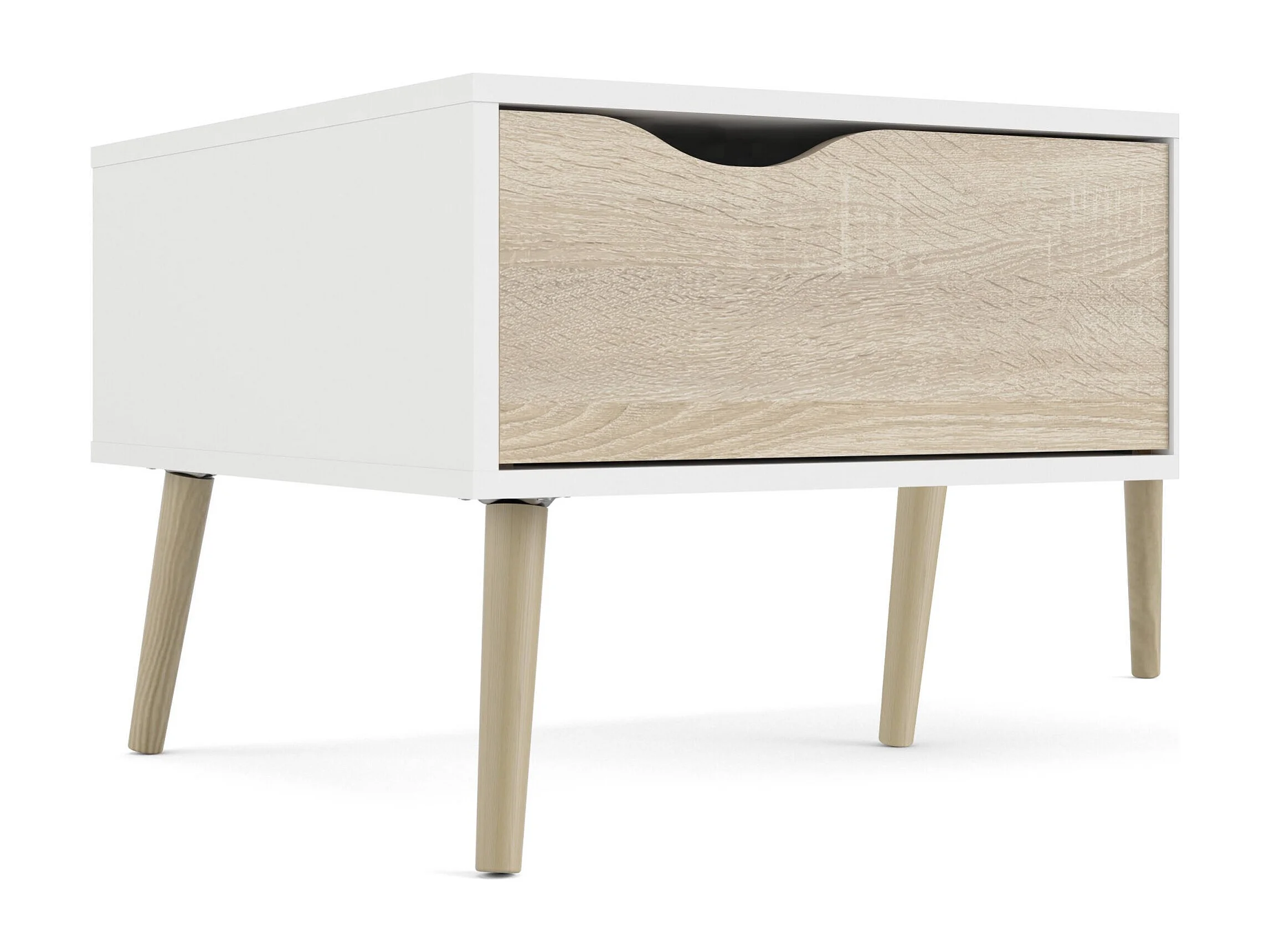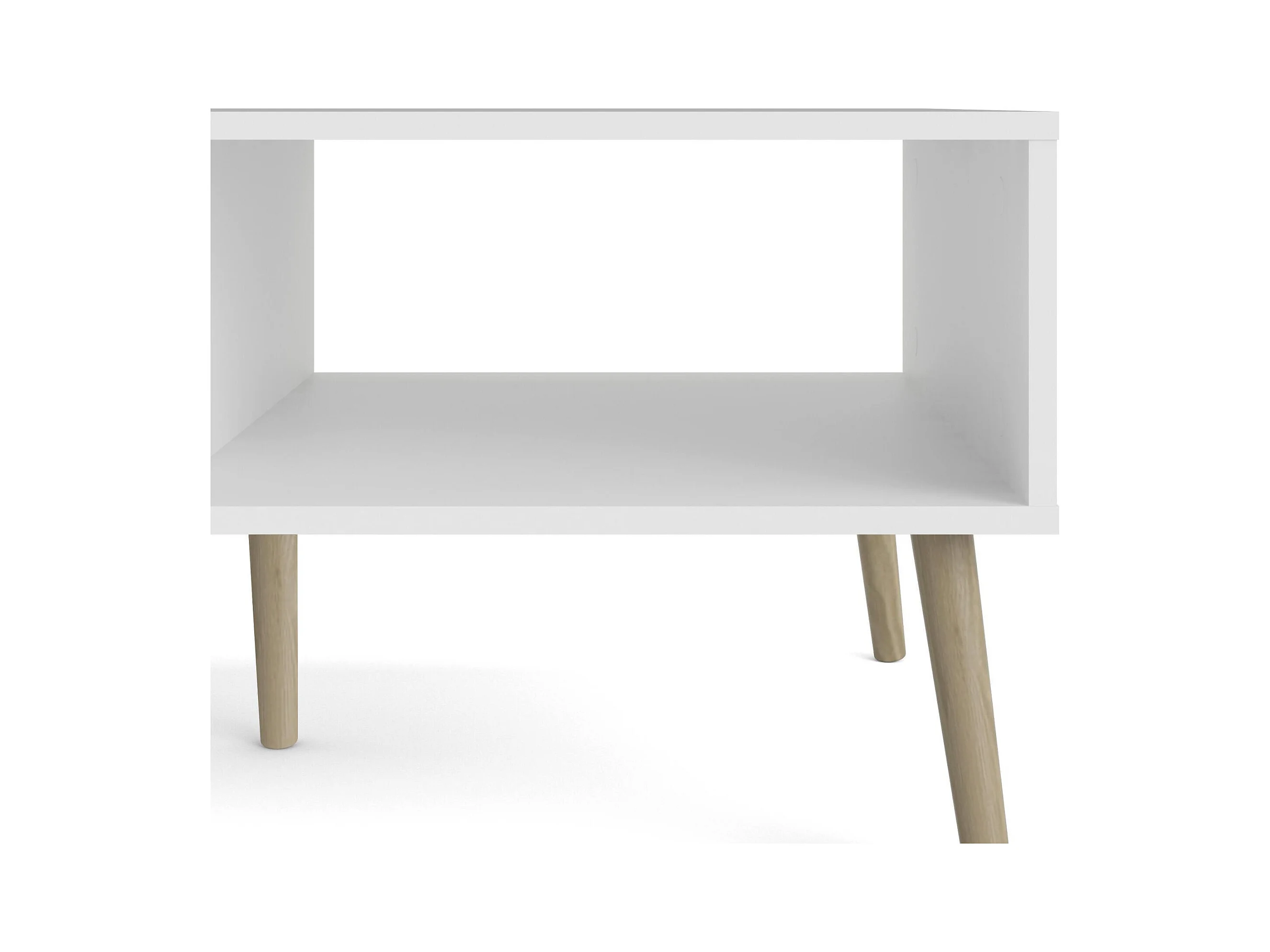 Table basse Dvannin, Table basse, Porte-revues pour canapé, Etagère de salon, 99x60 h43 cm, Blanc et chêne