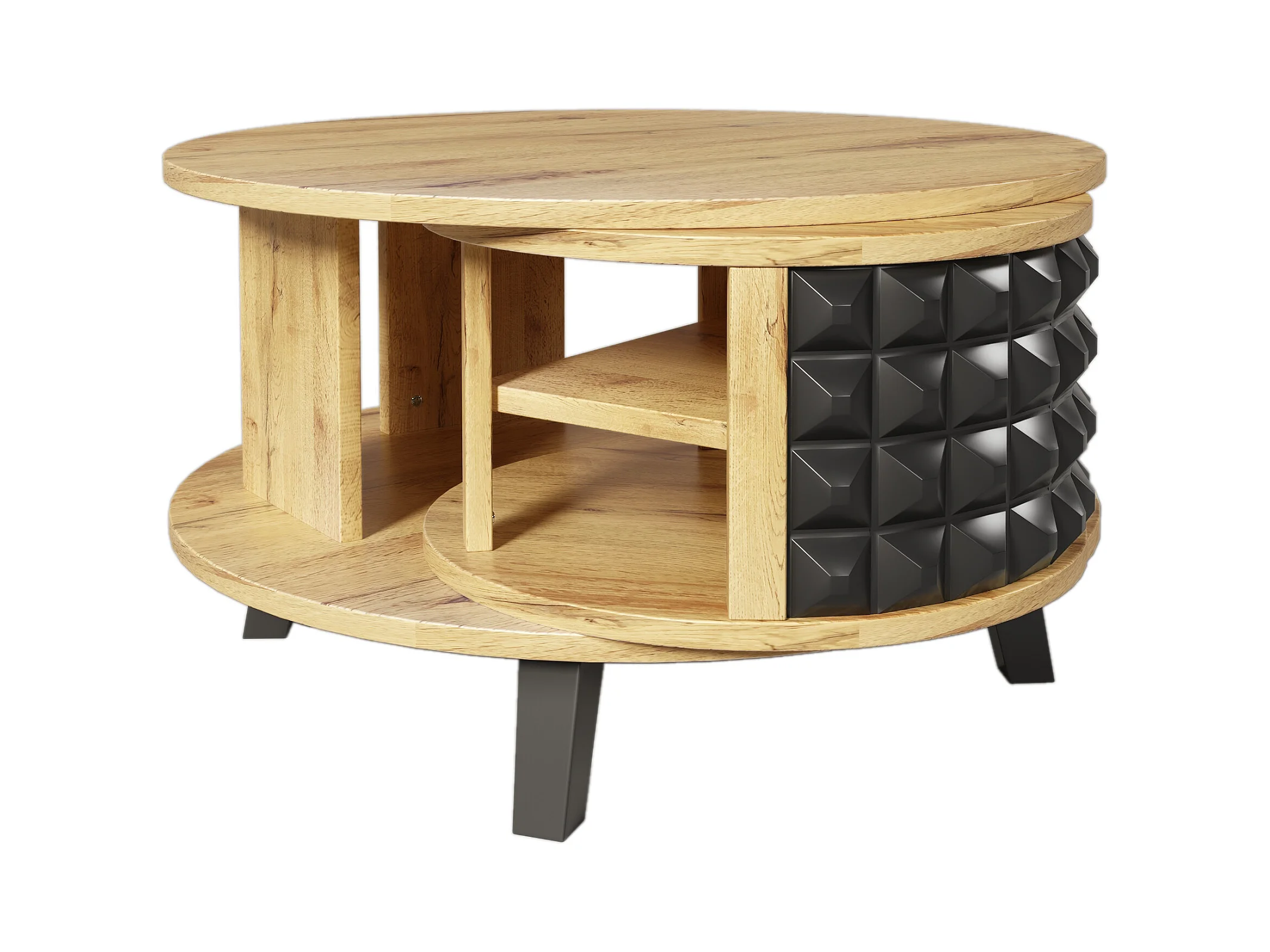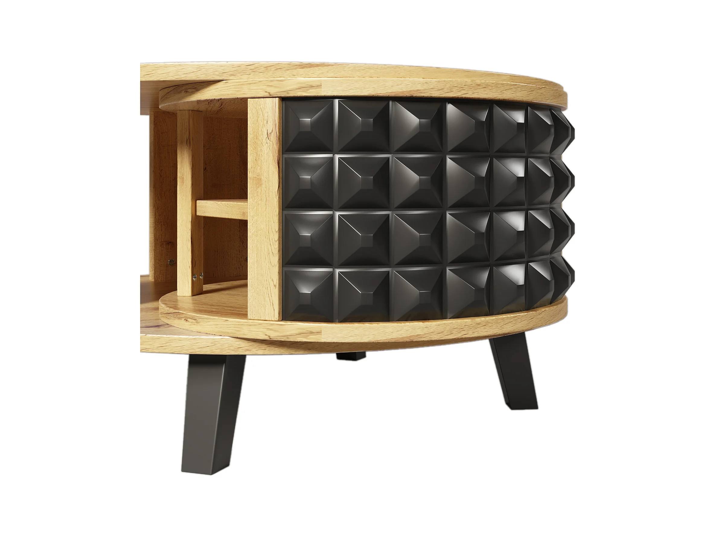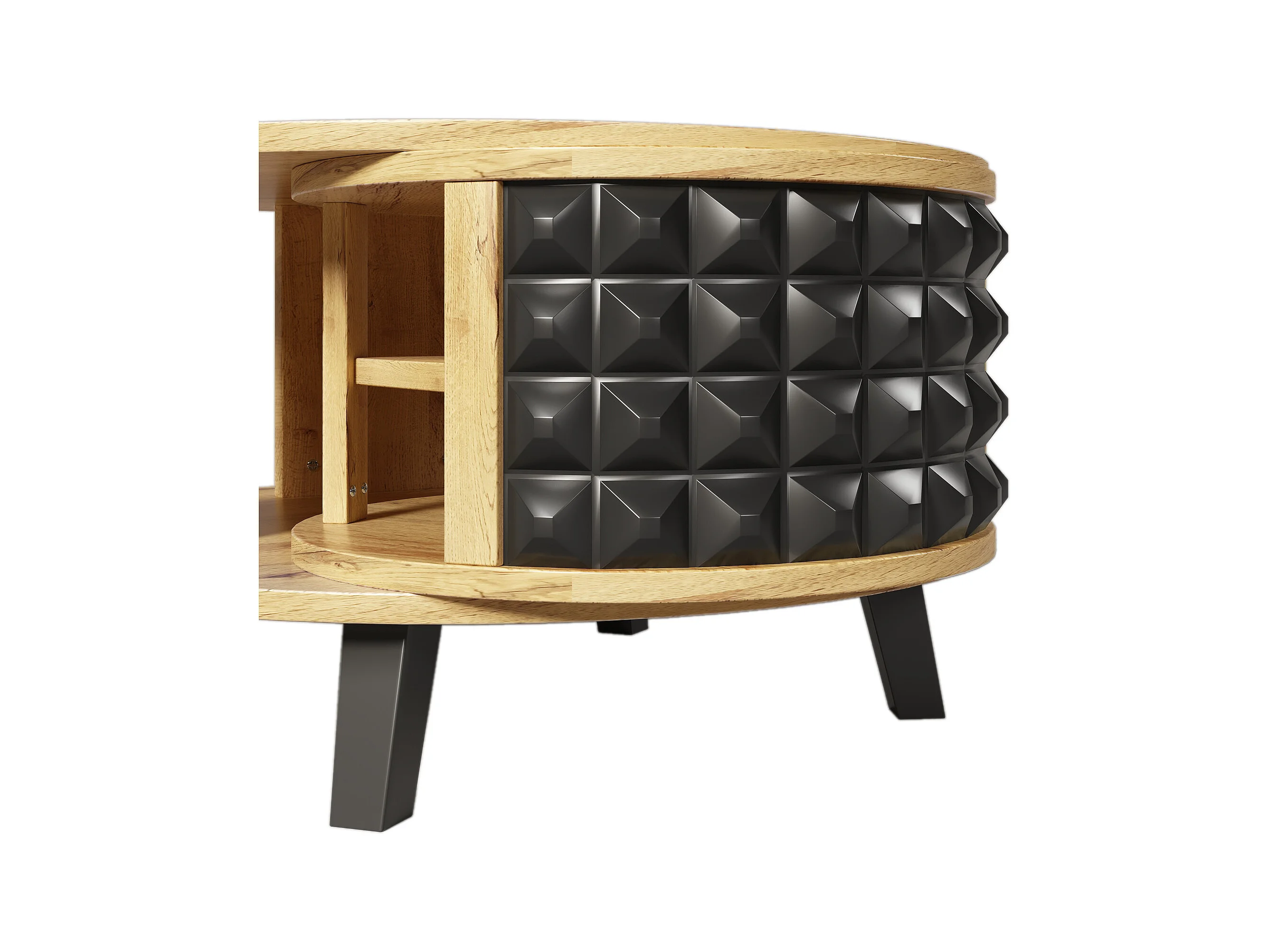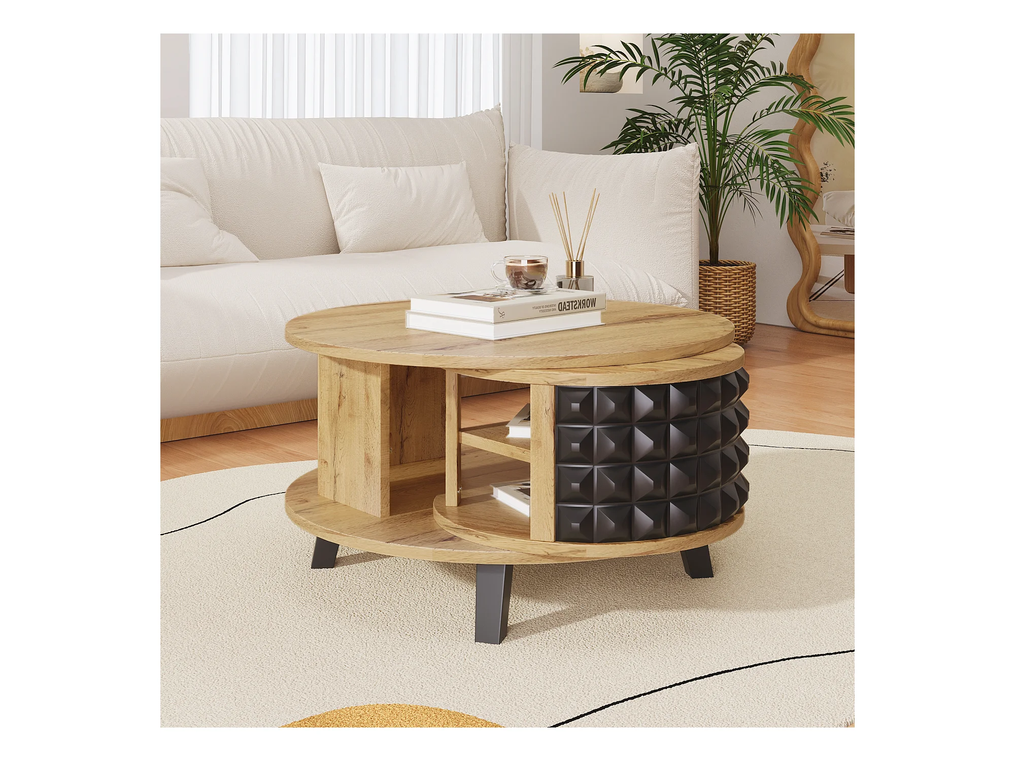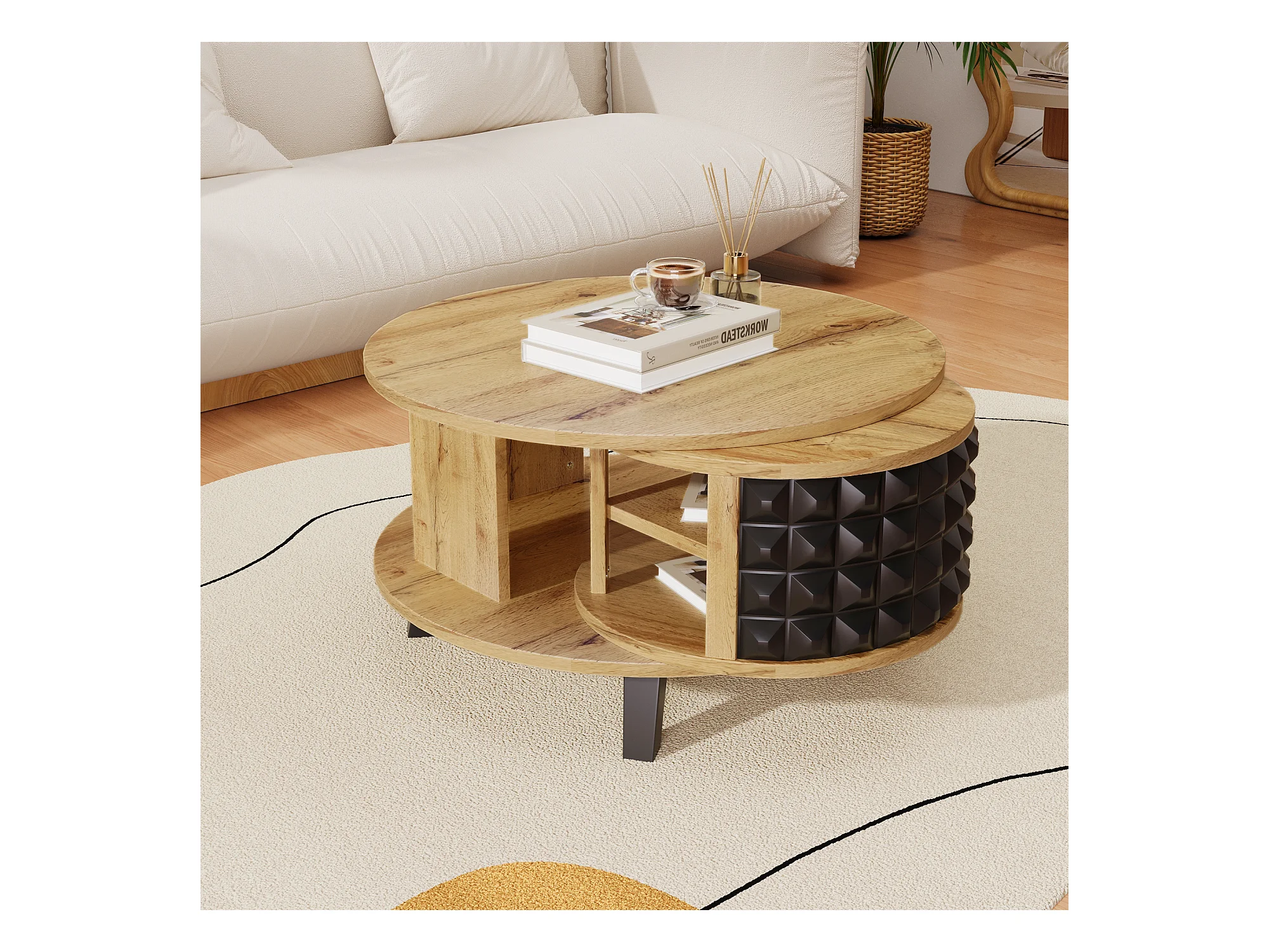 Table basse effet bois et noir, rangement interne rotatif LAACRO